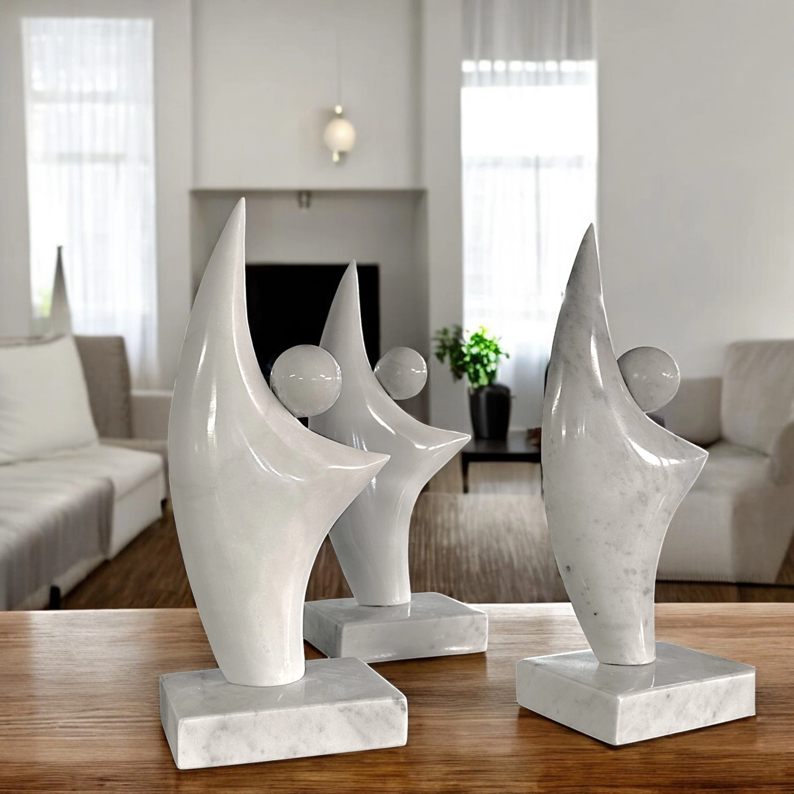 The craftsmanship of the workmanship, manifested in the precision of form and attention to detail, makes each sculpture a unique piece, a work of art that celebrates the harmony between form and material. Abstract Carrara marble sculpture is a valuable investment, a symbol of beauty and spirituality that enriches the environment and the soul. It represents lightness, connection, and harmony, universal values that resonate with every person.
