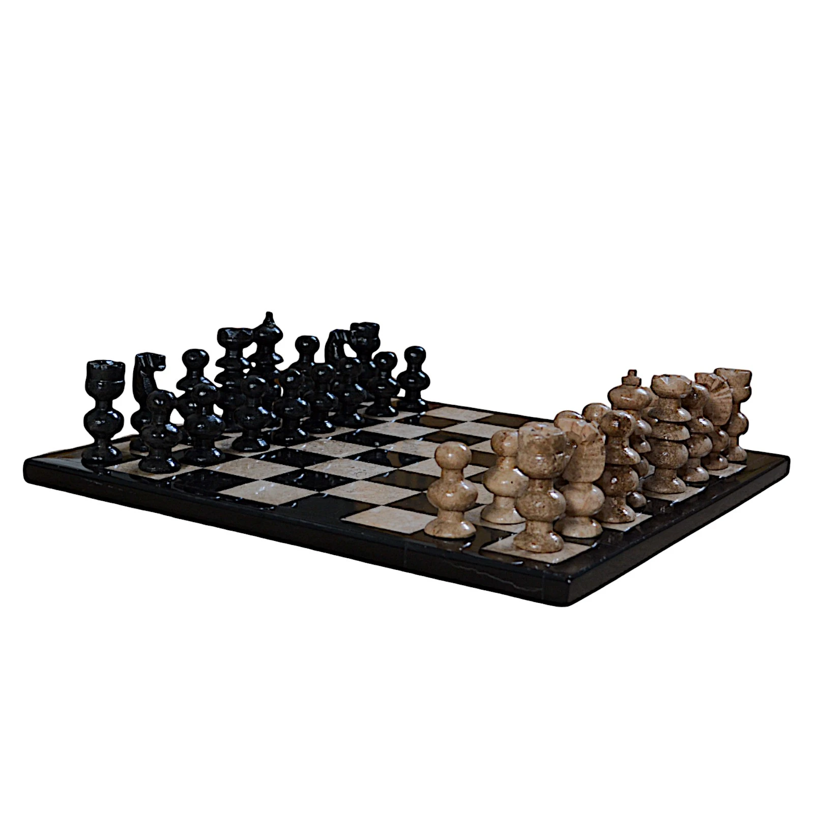 Alabaster Chessboard and Black and White Marble Chess Set 35cm