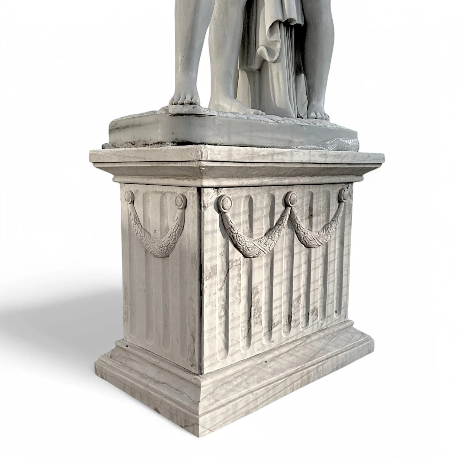 Carved capital made of natural marble that represents the perfect balance between art and contemporary design. The festoon detail adds movement and depth to the sculpture, creating a harmonious contrast with the purity of white Carrara marble. Ideal for elegant environments and for those who wish to embellish their home or professional space with an exclusive decorative element.
