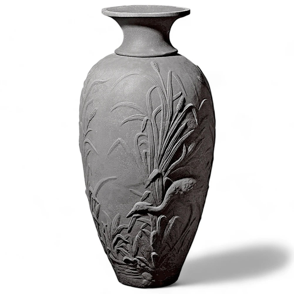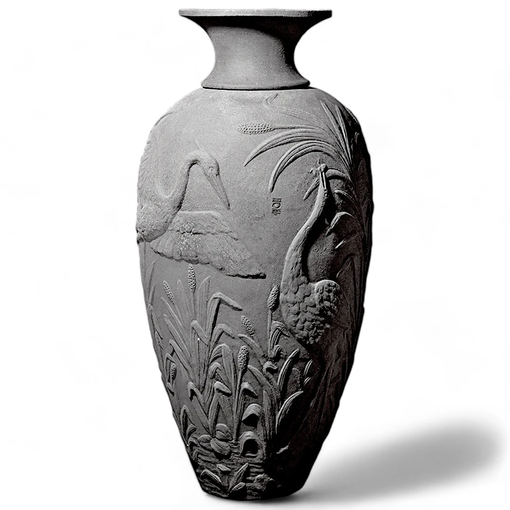 Each terracotta object is hand-moulded in high relief. The creation of each object requires precise processing times, drying at natural temperature, baking in the oven, cooling at natural temperature. Delivery of some items can take about 20 days, which can also vary depending on weather conditions. The lava gray color is obtained by adding of a mineral oxide to the clay mixture to make the object a metal gray hue. All the characteristics of terracotta remain unchanged. Gray is a popular neutral color, the new neutral par excellence. It conveys elegance and restraint. Very versatile, it goes very harmoniously with bright hues and neutral tones. Lava gray terracotta gives rooms a refined and trendy feel.