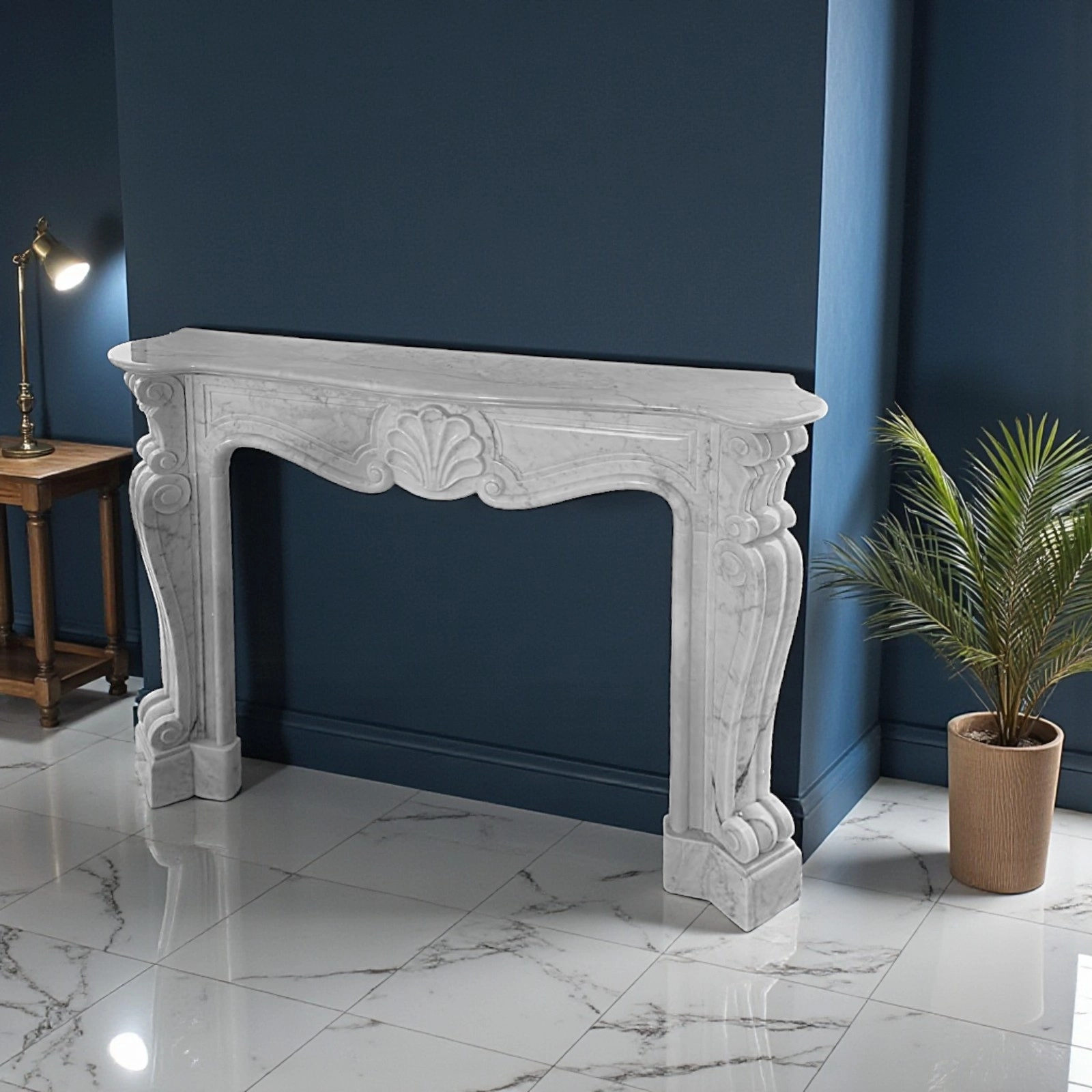 Choosing a Carrara white marble fireplace means investing in a noble material, celebrated for centuries for its beauty and durability. This fireplace frame adds architectural value and character to the space, becoming a symbol of taste and attention to detail, perfect for those seeking a high-impact, quality decorative element.