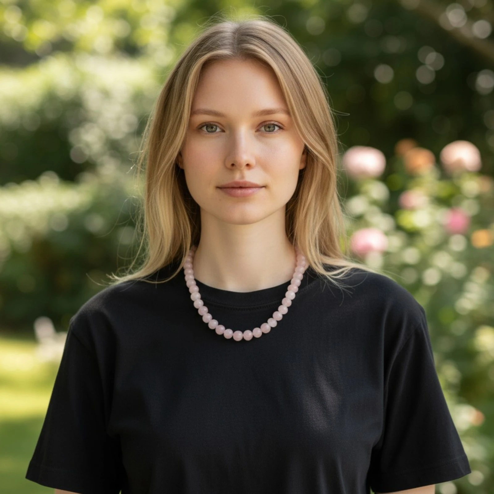 Handcrafted Necklace with Elegant Rose Quartz Beads, Natural Stone, 23 cm - cosebelleantichemoderne