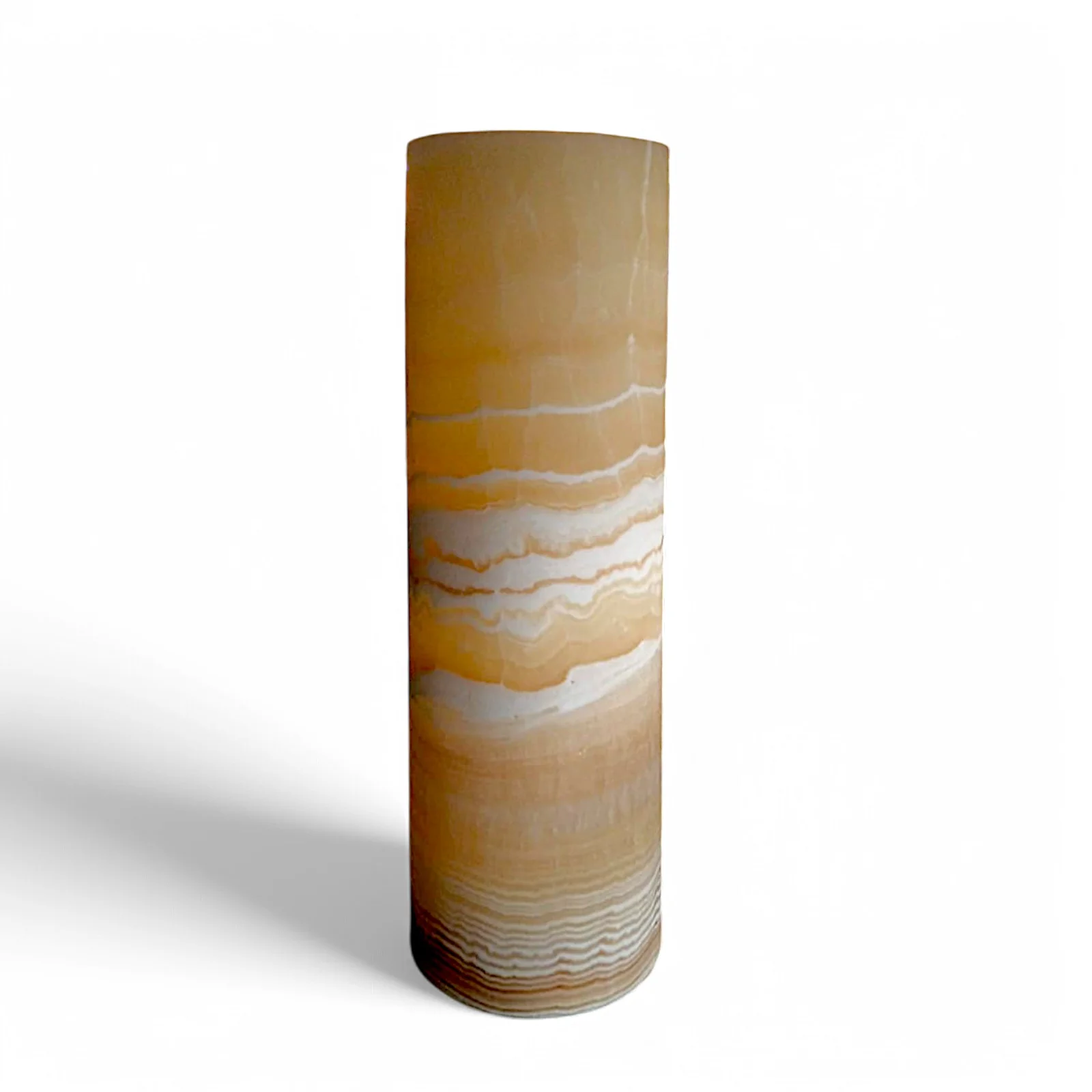 Natural onyx is a fine stone used in interior design for its ability to filter light and create extraordinary visual effects. Each stone block has unique veining and hues, making each lamp a unique piece.