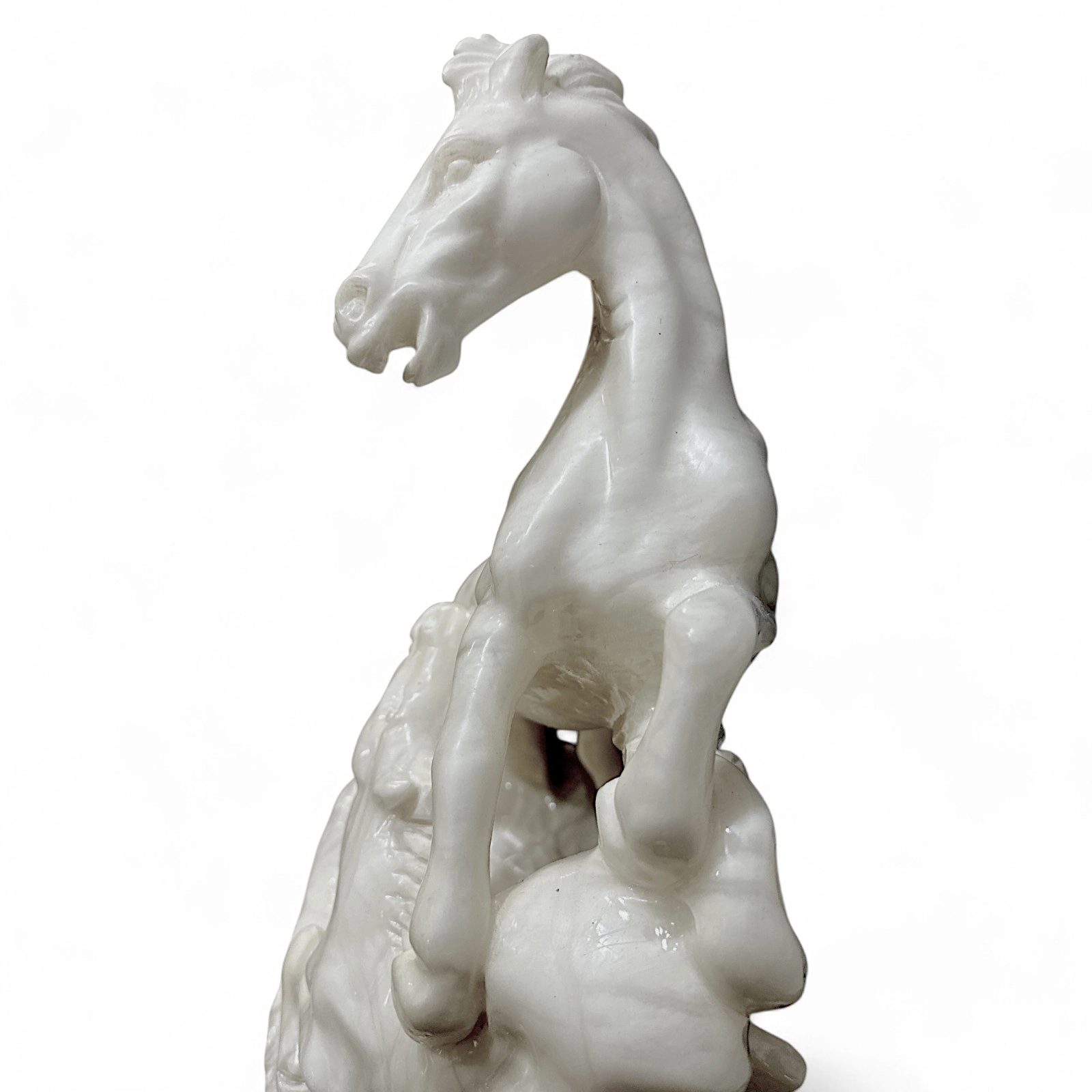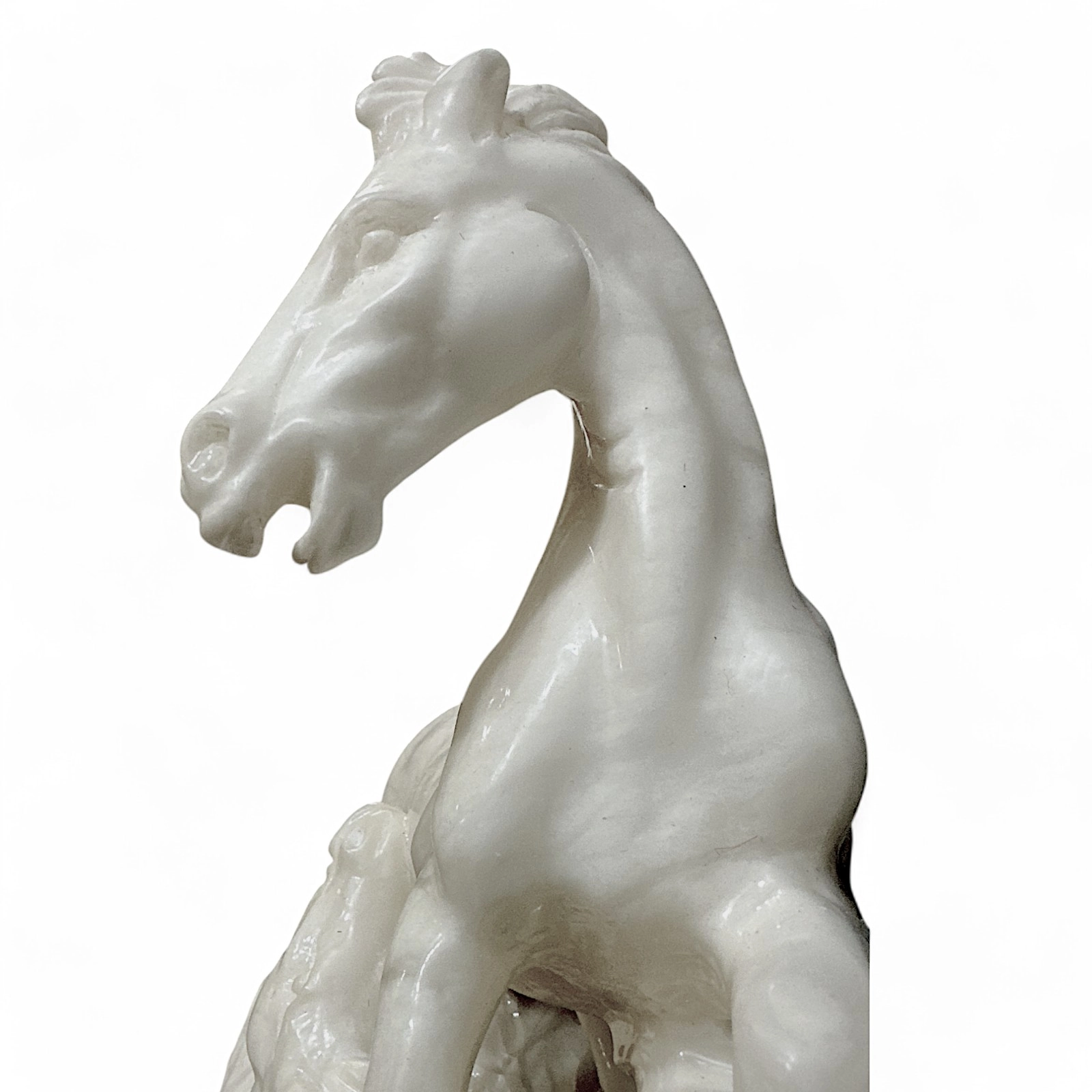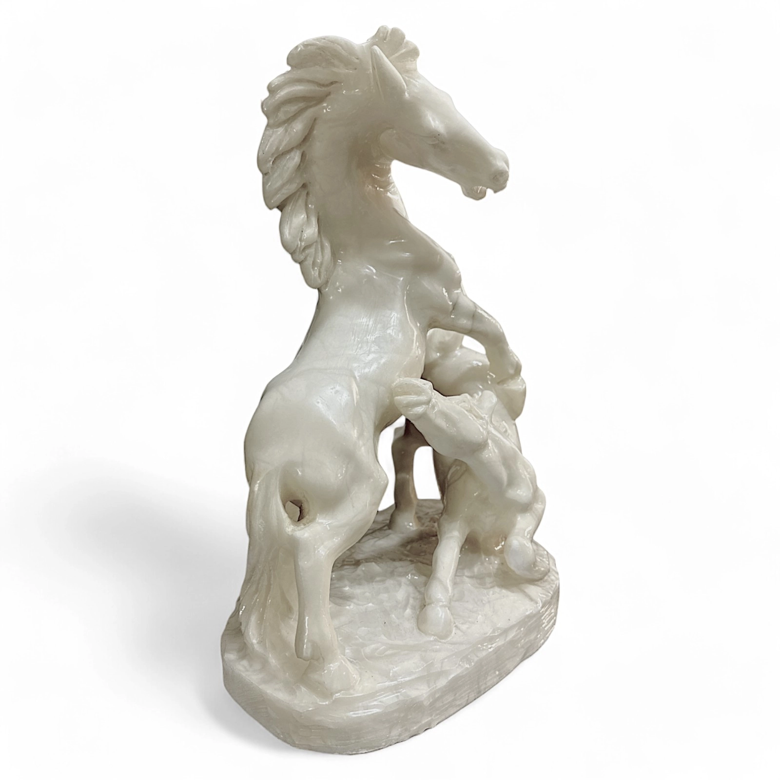 Contemporary sculpture inspired by ancient art. The unique aspect of this artwork is the way it captures the beauty and grace of the horse in a classic and ideal way. With realistic proportions and the intricate details, the horse figure is a striking addition to any art collection. The horse is a symbol of freedom, beauty, strength, vitality and courage. A recurring element in numerous cultures, traditions, and myths, it is universally recognized a symbol of strength, vitality, and intelligence, qualities that are extended and amplified in the man who can tame it. The white horse is also considered a symbol of Good and a messenger of birth.