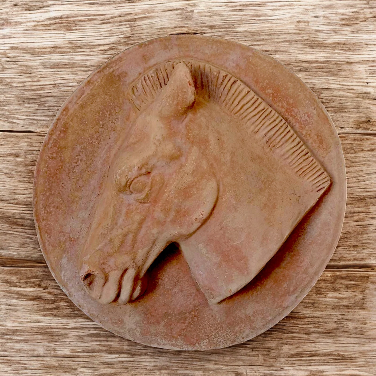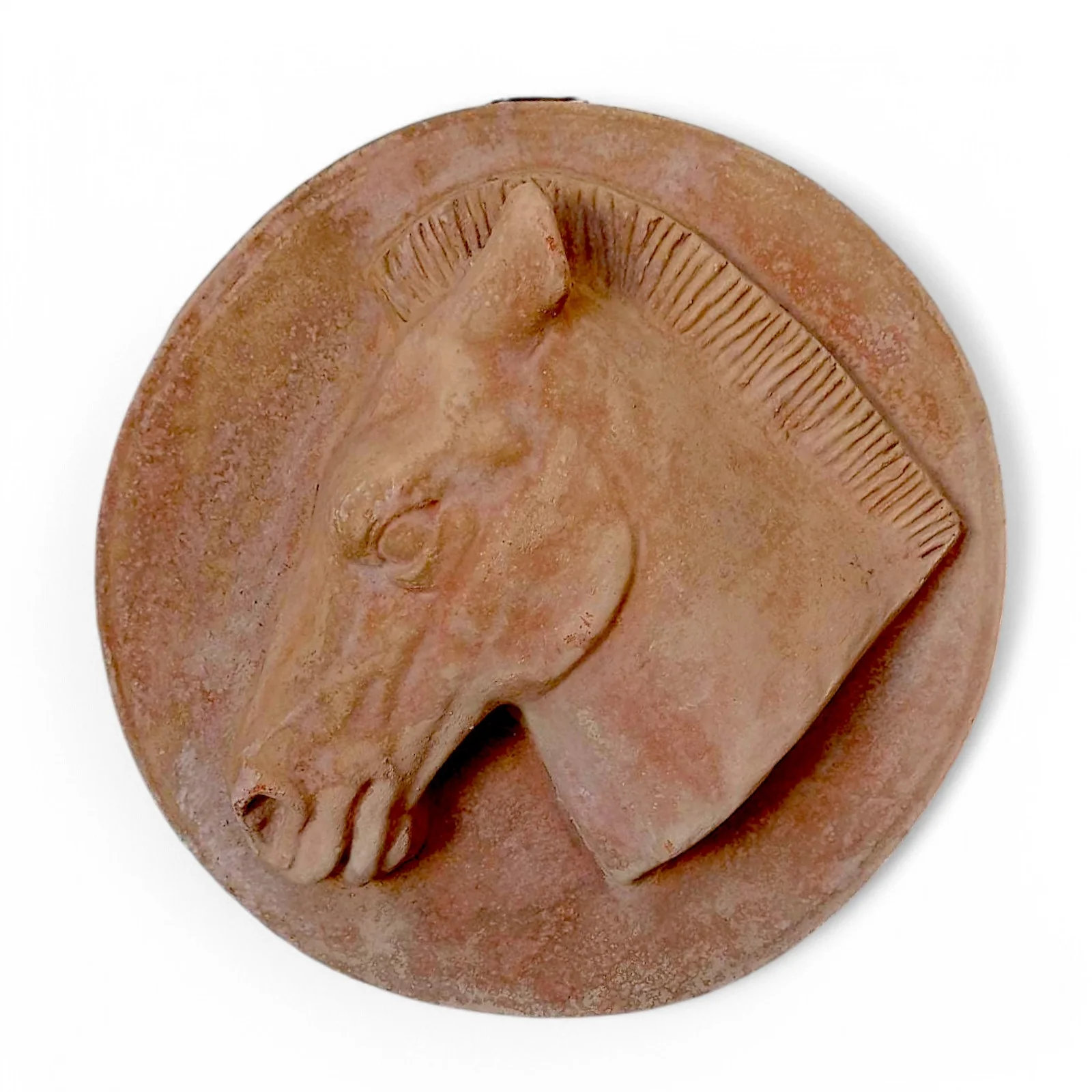 Horse terracotta dish. Wall decoration equipped with holes for hanging. Made in high relief.