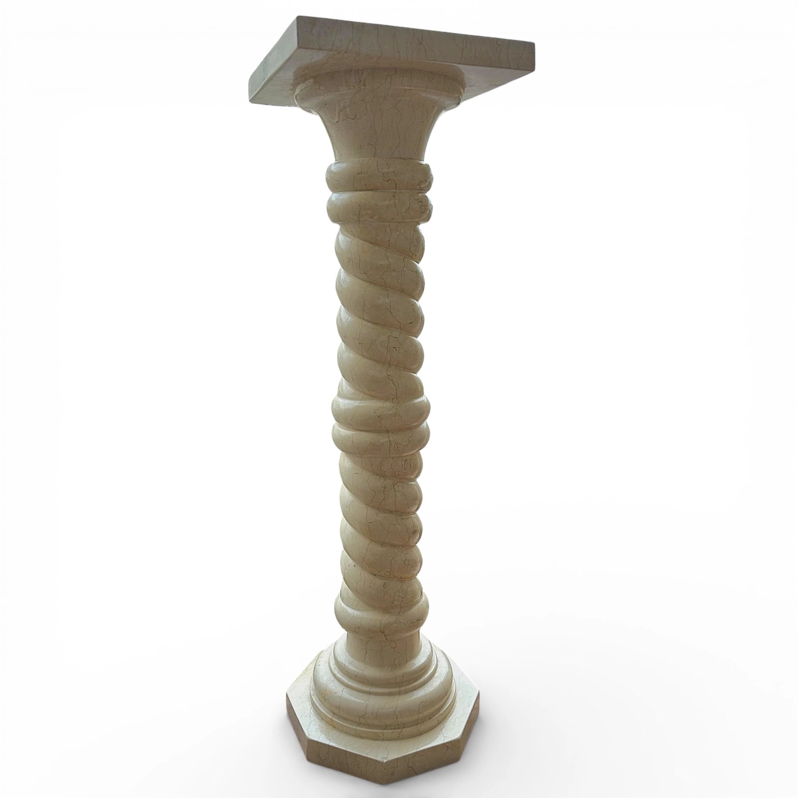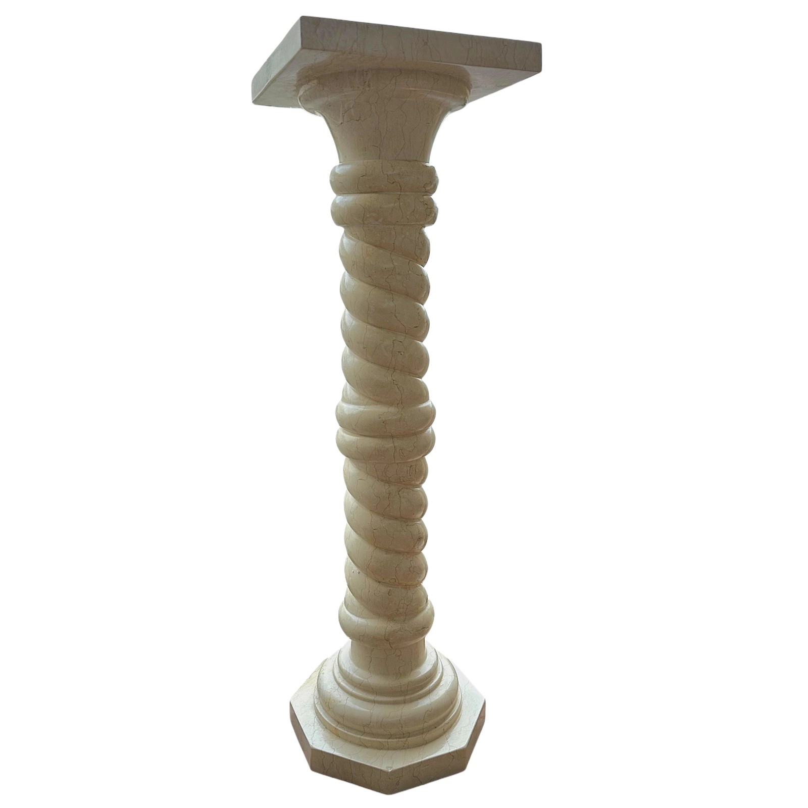 This Egyptian Yellow marble column is a sculptural piece of great charm and presence. Its balanced proportions and twisted shaft provide dynamism and visual lightness, transforming the column into a distinctive decorative element that integrates naturally into classic, modern, and minimalist settings.
