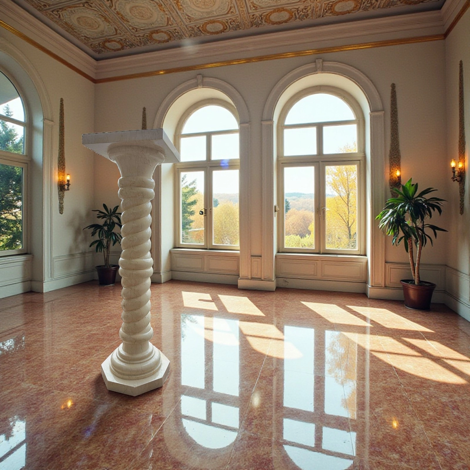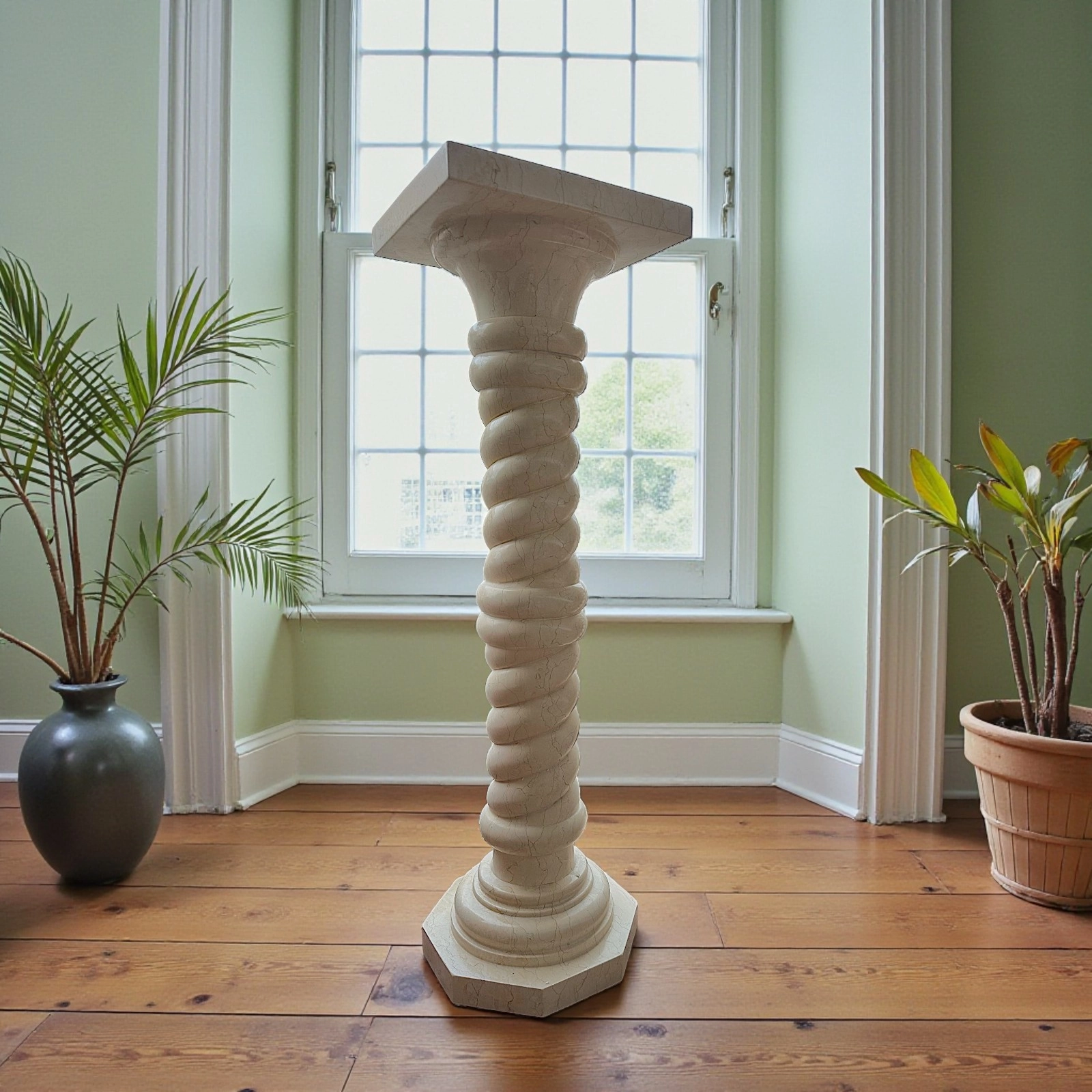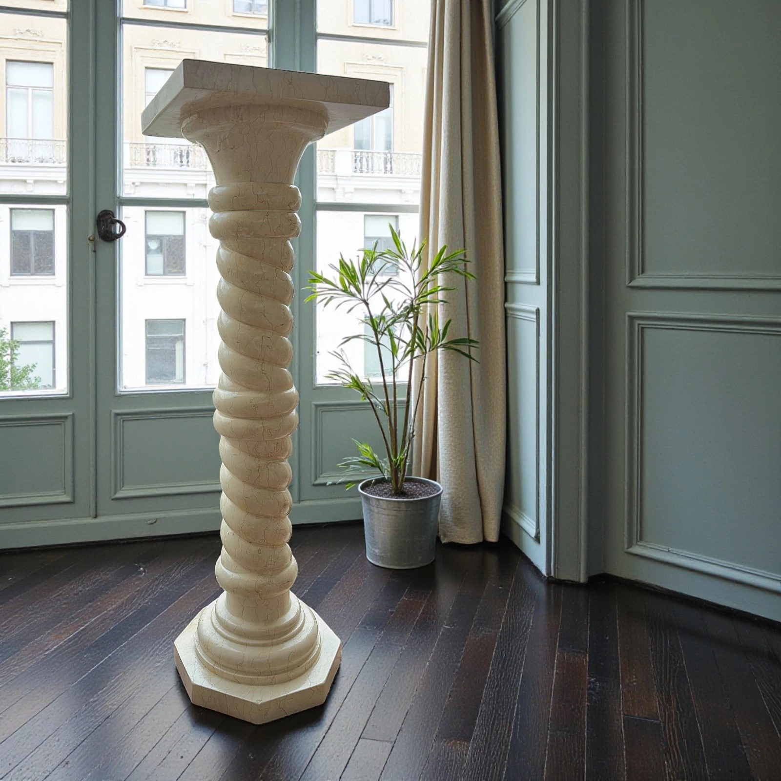 Beyond its aesthetic elegance, the column can support sculptures, vases, or other art objects, or be displayed as a standalone decorative element. The twisted form evokes architectural stability and harmony, enhancing residences, professional studios, and galleries with discretion and refinement.
