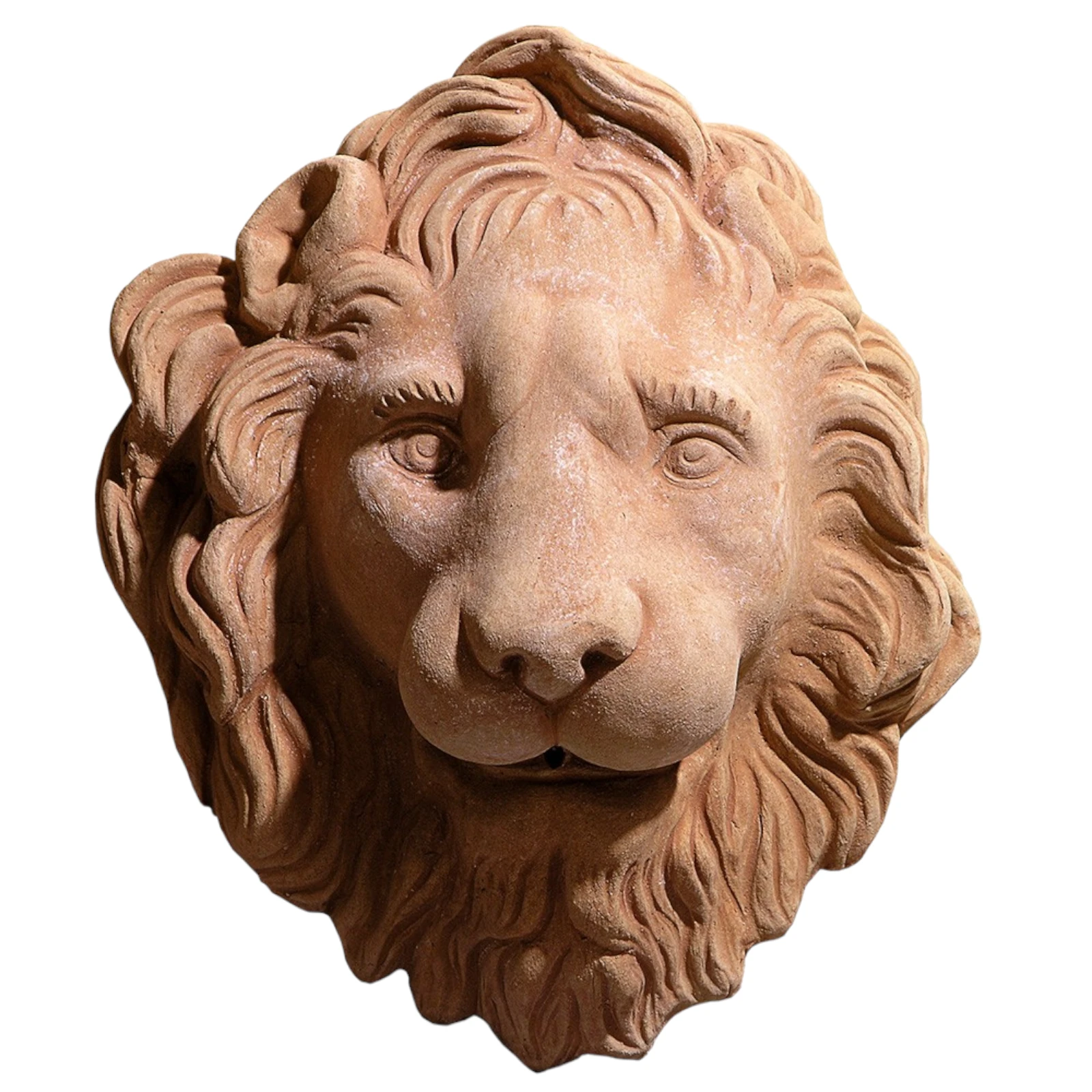 Antefissa Etrusca a testa di Menade, decorazione in terracotta realizzata a mano in Italia con argilla di Impruneta, secondo la tradizione toscana.