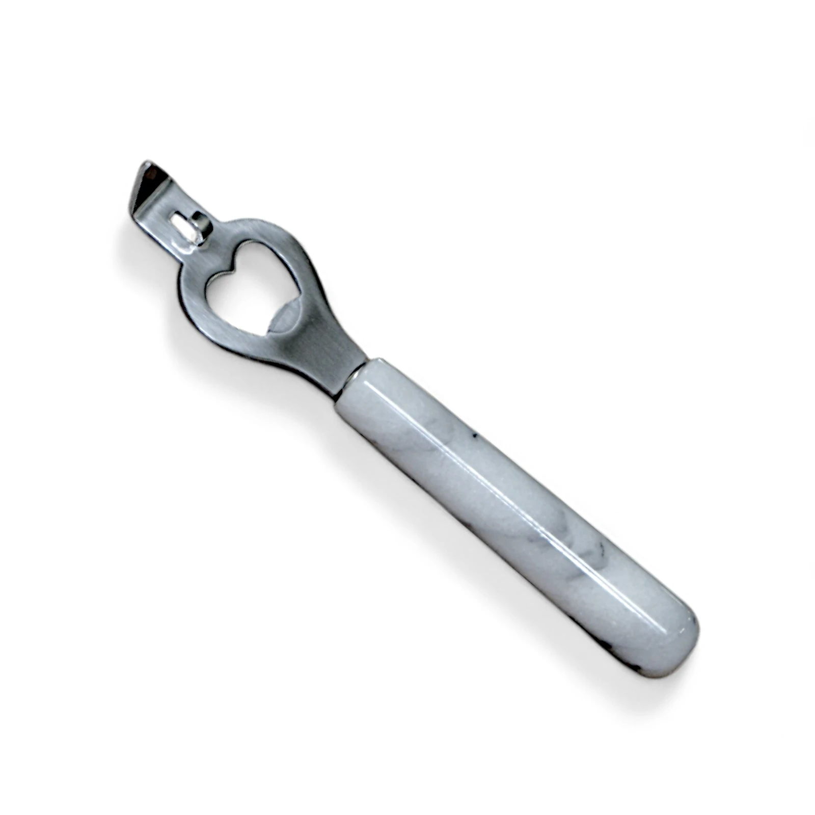 Apribottiglie da cucina in Marmo Bianco Stauario dal manico sottile.