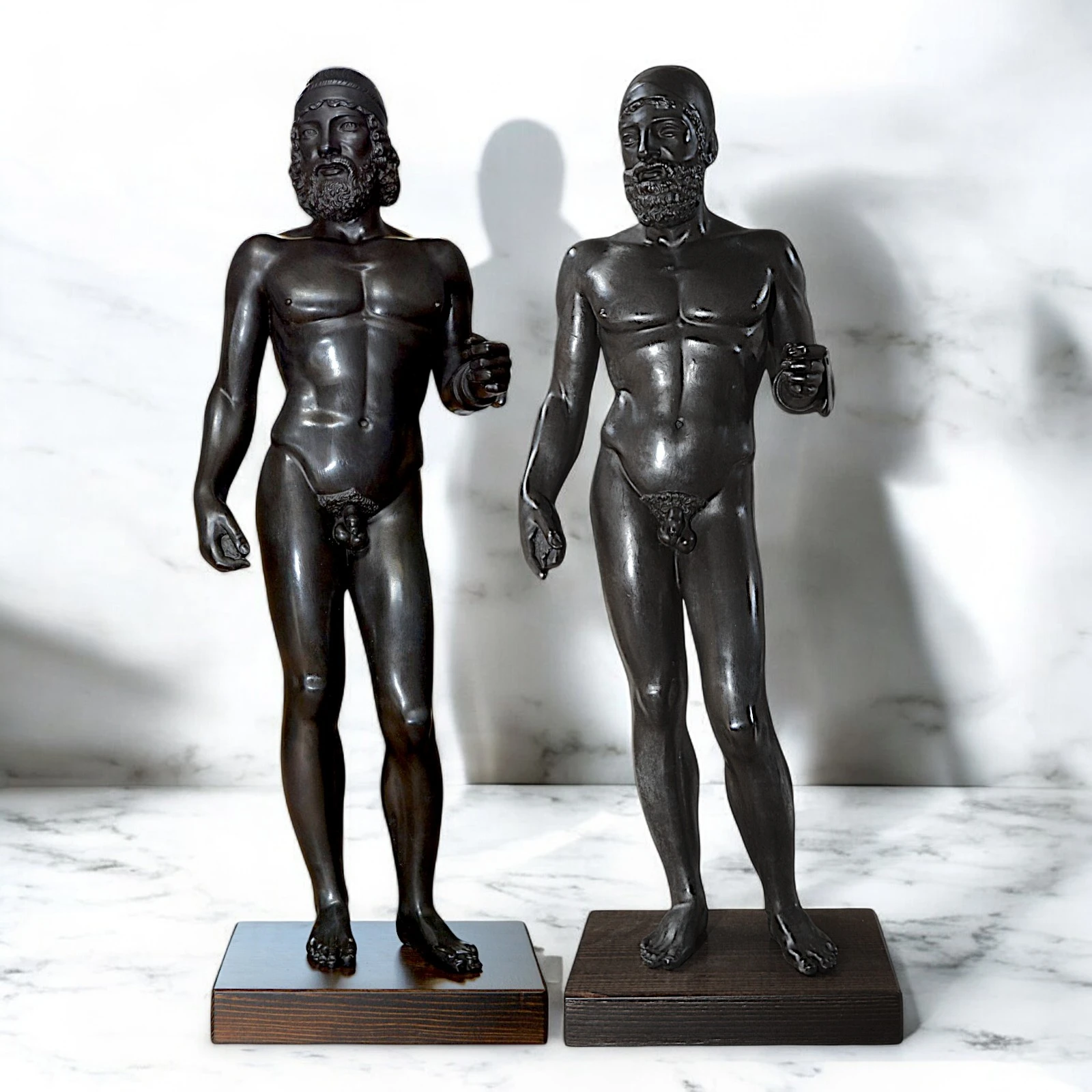 La scultura Bronzo di Riace può essere acquistata anche in coppia, offrendo una rappresentazione completa dei due celebri guerrieri, conferendo al tuo ambiente un fascino classico e un legame diretto con l’arte e la storia greco-romana. Le opere originali, simbolo di forza e perfezione estetica, sono state ammirate per secoli per la loro incredibile bellezza e precisione anatomica, e questa versione artigianale in marmo cattura quel fascino antico con un tocco di lusso contemporaneo.