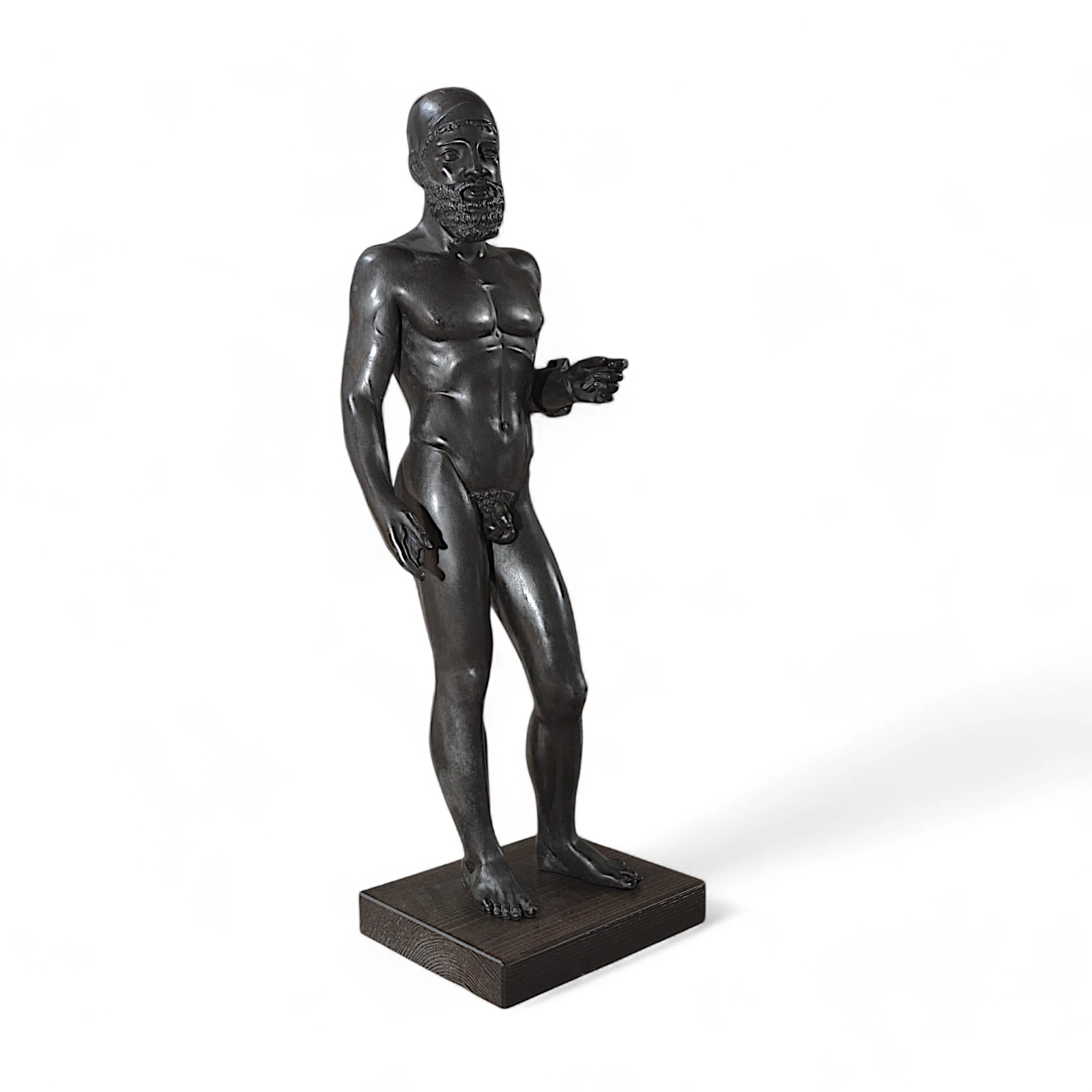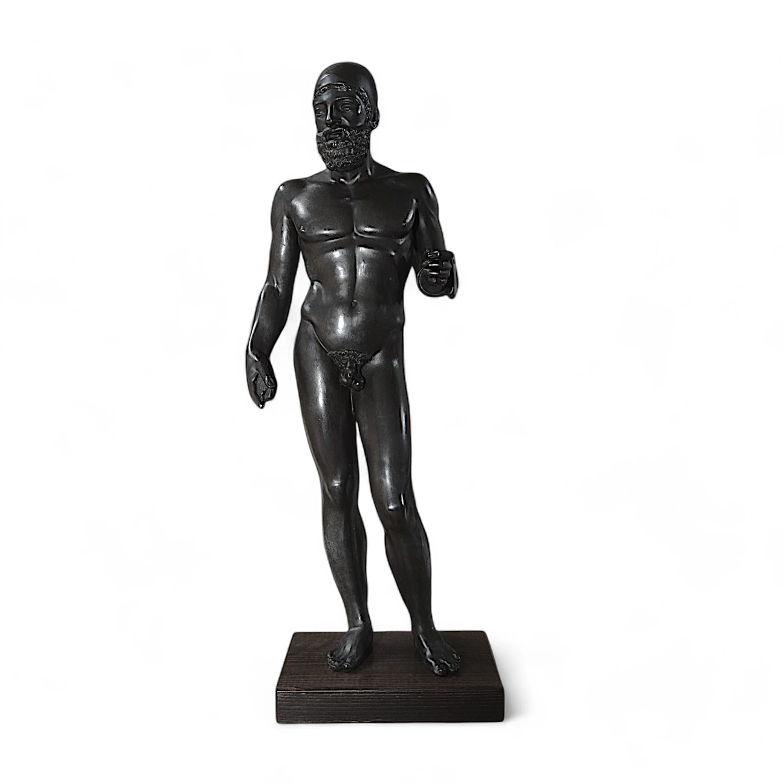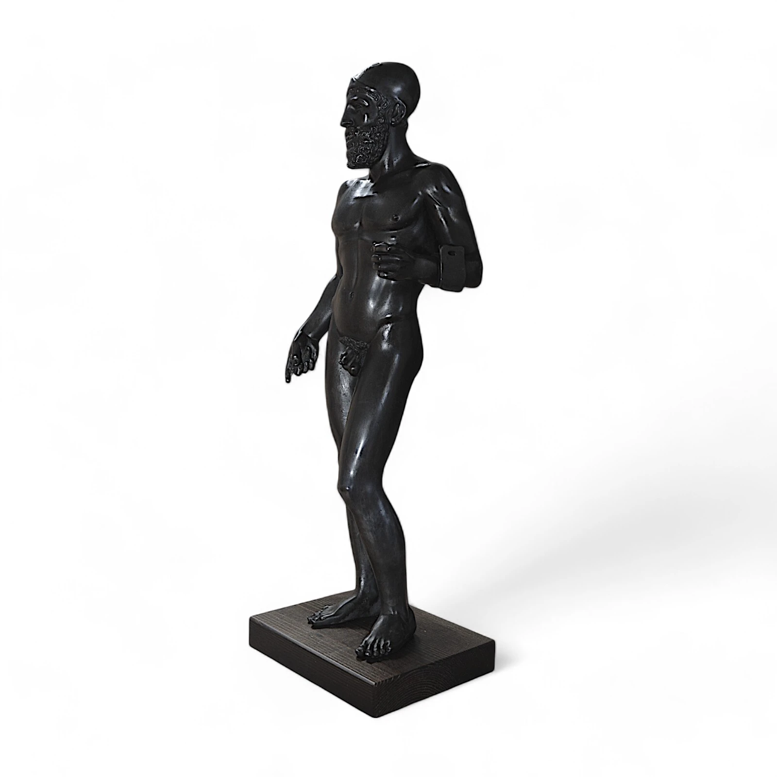La scultura Bronzo di Riace in marmo con finitura galvanica effetto bronzo è un capolavoro artigianale di 55 cm che celebra la bellezza e la maestosità delle opere originali.