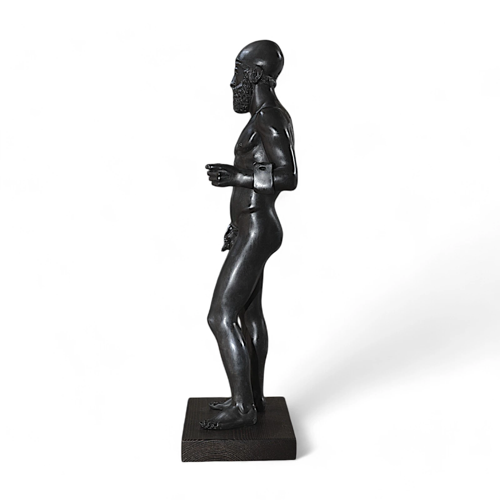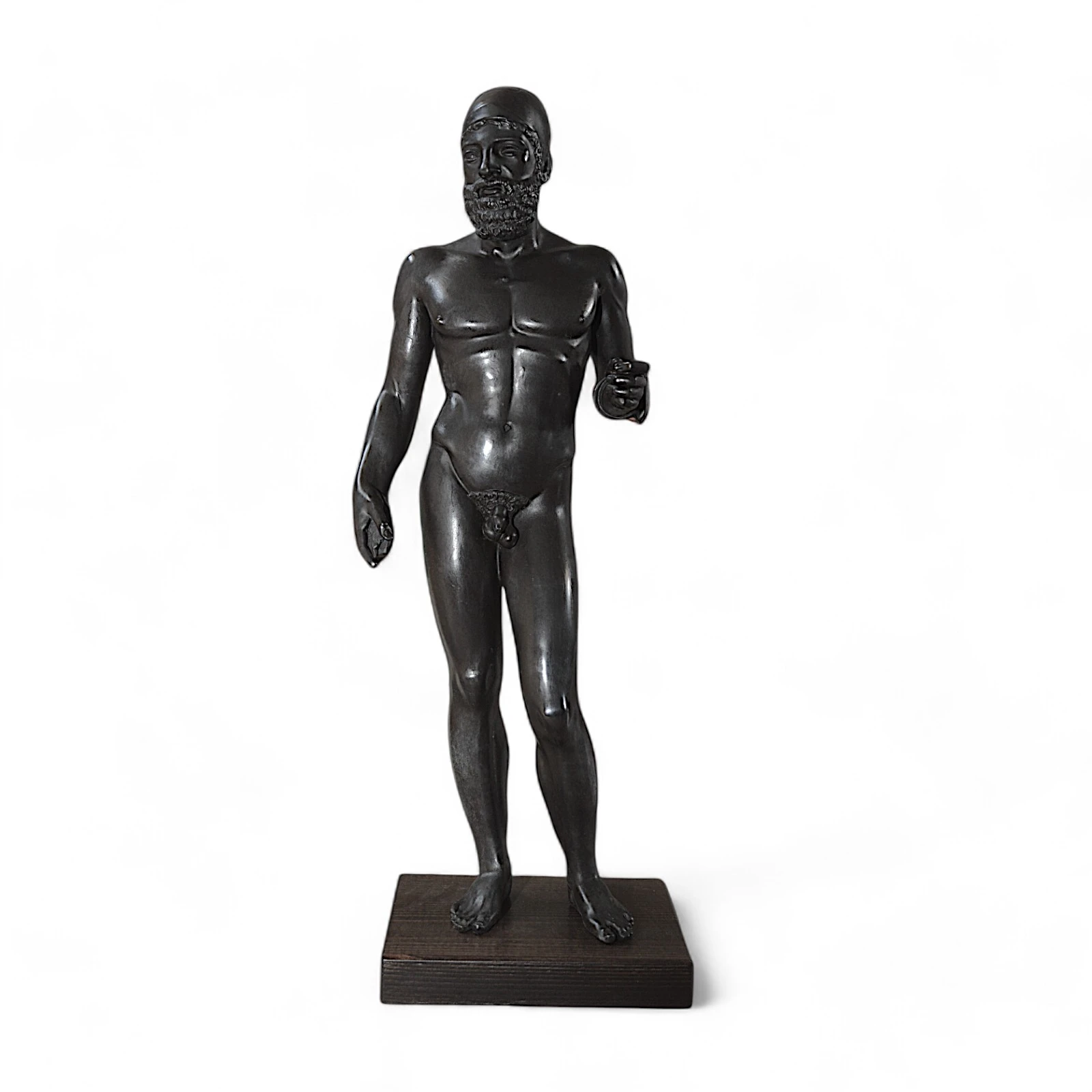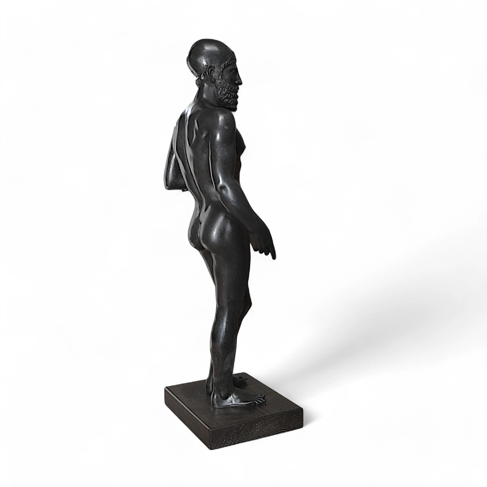 La scultura Bronzo di Riace in marmo con finitura galvanica effetto bronzo è un capolavoro artigianale di 55 cm che celebra la bellezza e la maestosità delle opere originali.