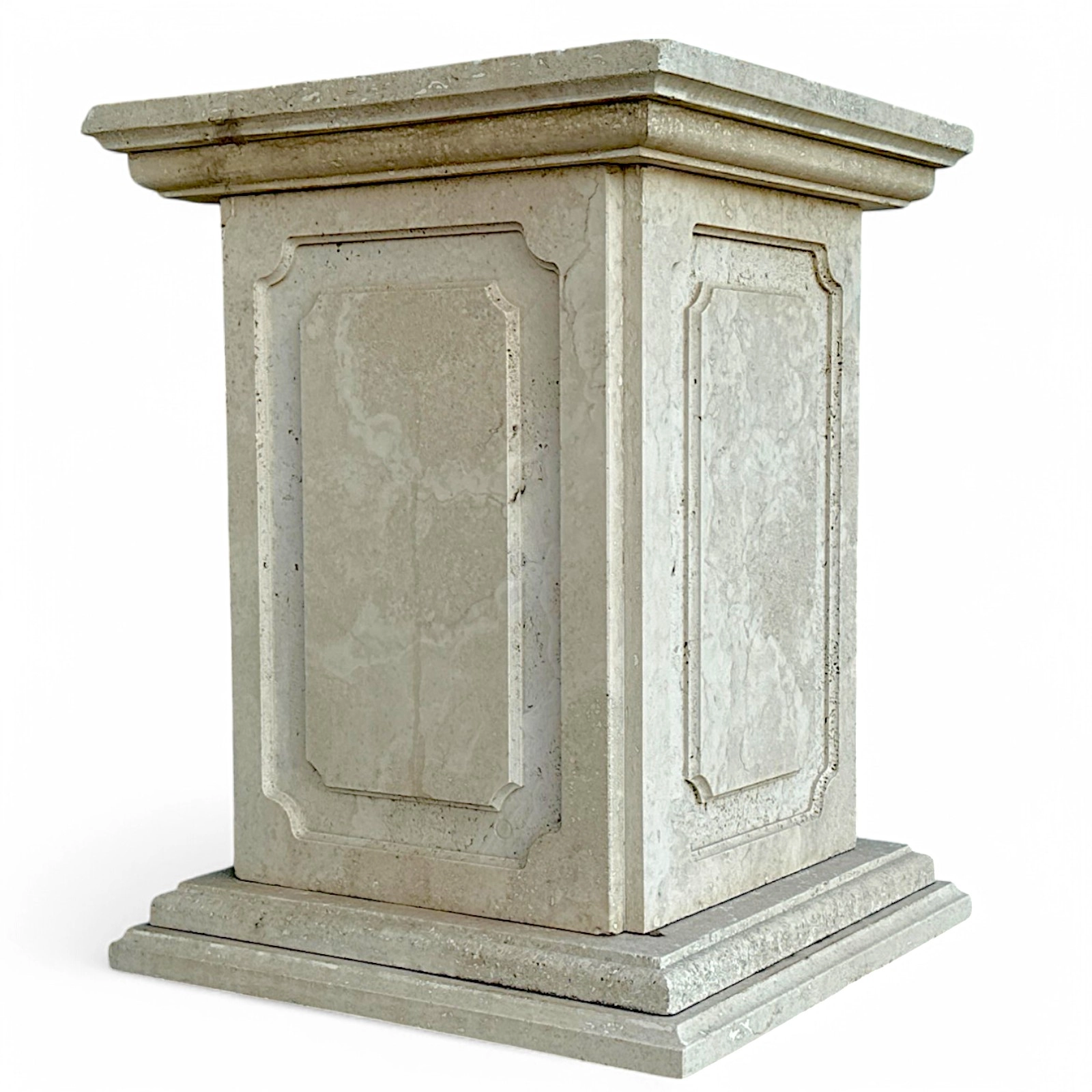 Il capitello in travertino classico è un’opera d’arte che unisce tradizione e design. Le sue linee armoniose e le venature naturali della pietra lo rendono perfetto per arricchire qualsiasi ambiente con un tocco di raffinatezza e imponenza. Ideale per interni scenografici e giardini dal fascino senza tempo, dona prestigio a colonne, ingressi e dettagli architettonici di grande impatto visivo.