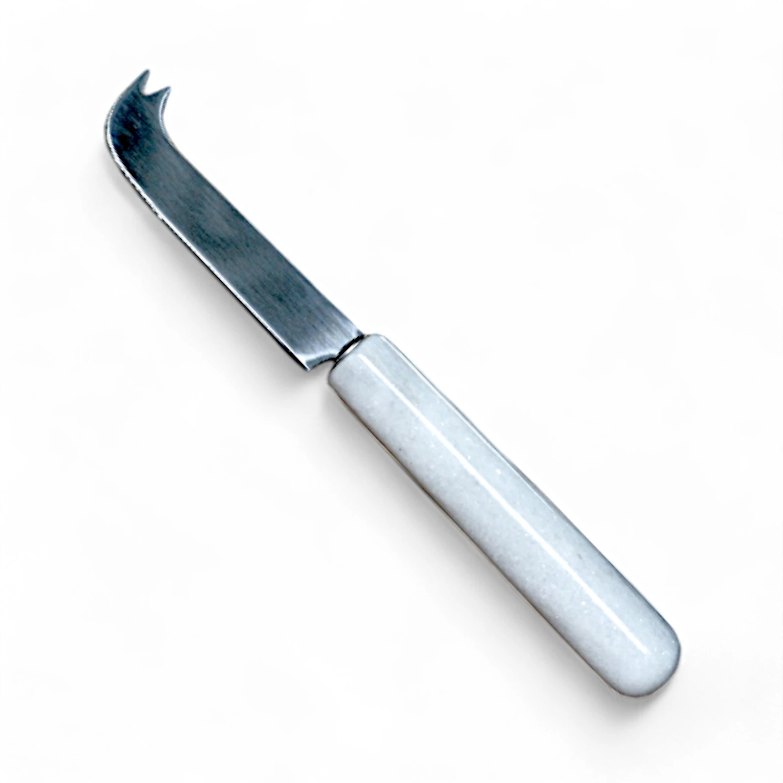 Il coltello da formaggio in marmo bianco Carrara è progettato per aggiungere un tocco di classe e versatilità alla tavola. La lama liscia e la punta arrotondata lo rendono perfetto per spalmare formaggi cremosi, mentre la doppia punta consente di servire facilmente ogni fetta, evitando che la lama si attacchi alla pasta del formaggio. Le sue dimensioni ridotte lo rendono particolarmente maneggevole, adatto per il servizio diretto anche in contesti formali o conviviali.