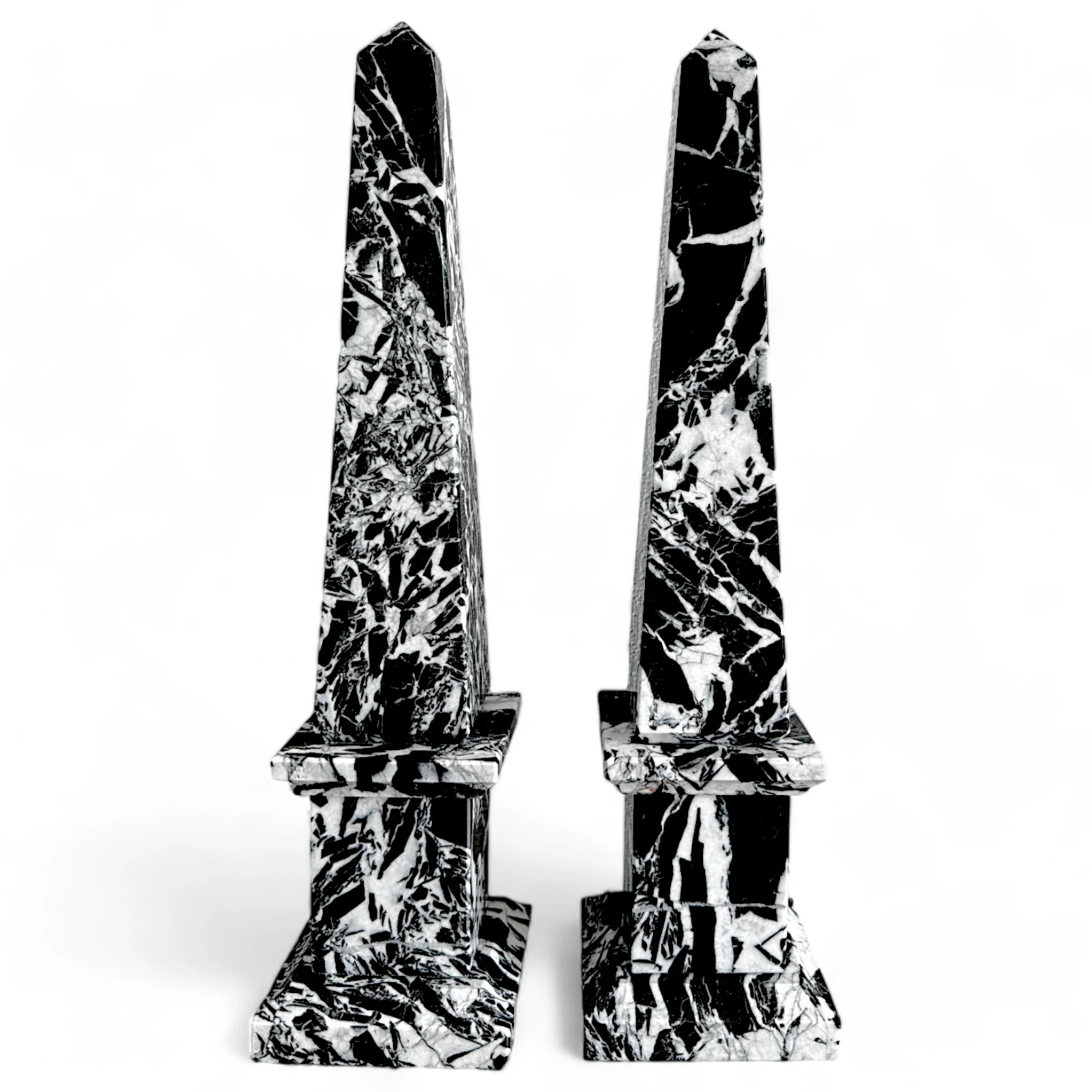 Ogni obelisco in marmo Nero d’Aquitania è un pezzo unico e irripetibile, che riunisce il pregio della pietra naturale con le sue irripetibili venature alla inimitabile manualità artigiana italiana.
