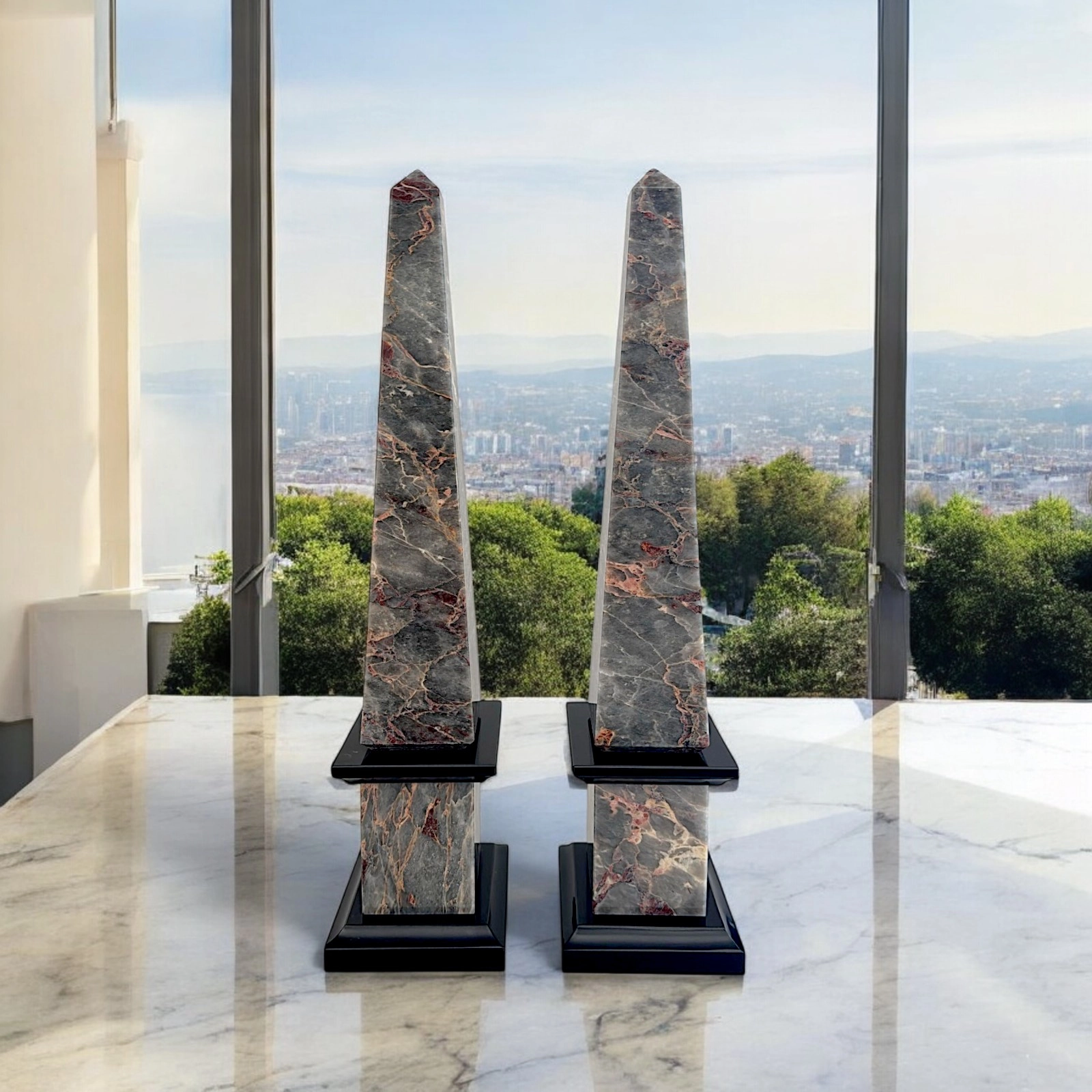 La coppia di obelischi in marmo rappresenta l’emblema dell’eleganza sostenibile, in grado di trasformare ambienti di prestigio con il fascino intramontabile della pietra.