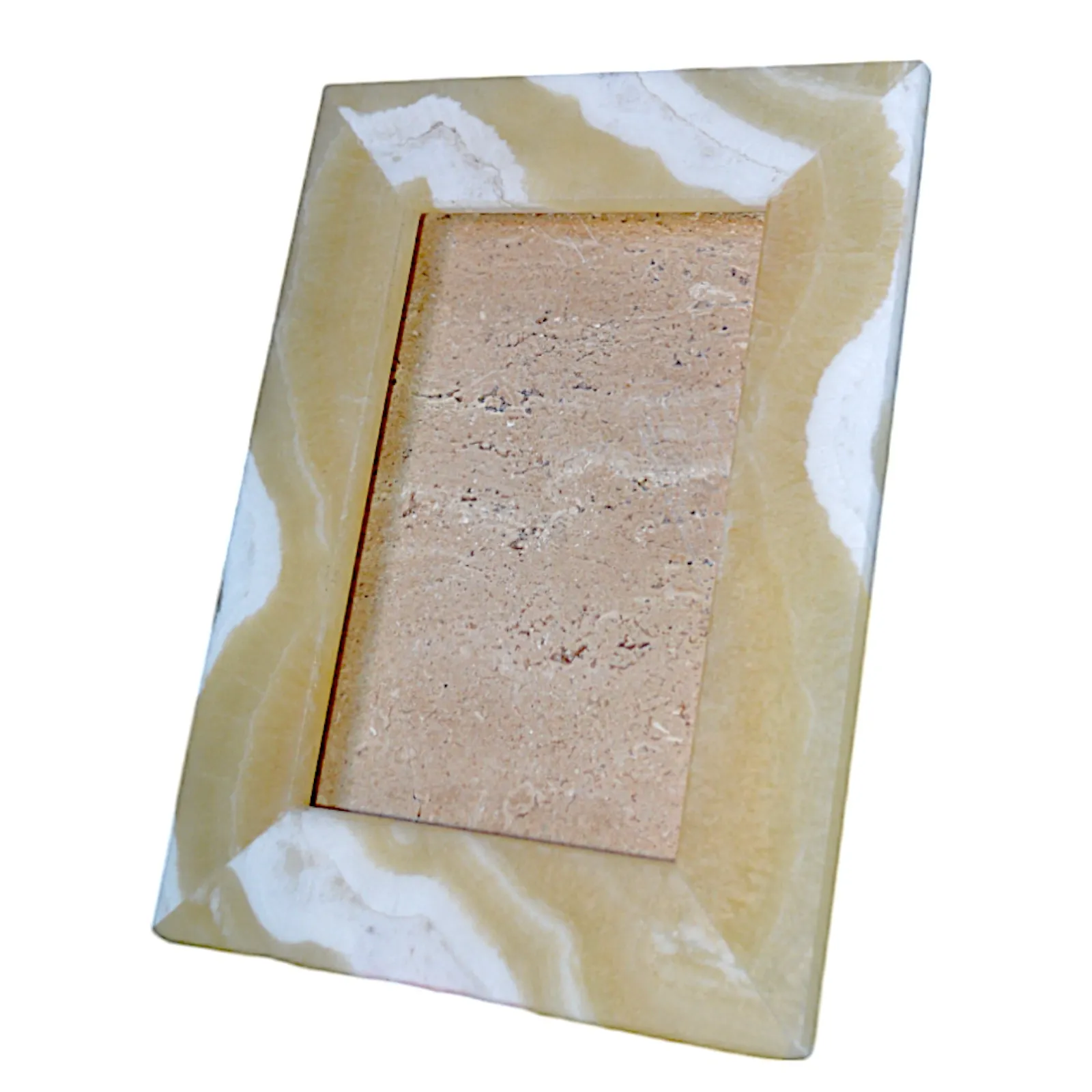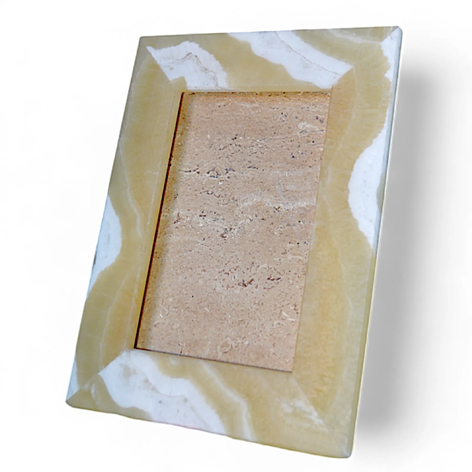 Pratica, elegante e durevole cornice portafotografie realizzata in onice, materiale durevole e pregiato che conferisce un aspetto originale, classico e senza tempo ad un oggetto indispensabile e raffinato.