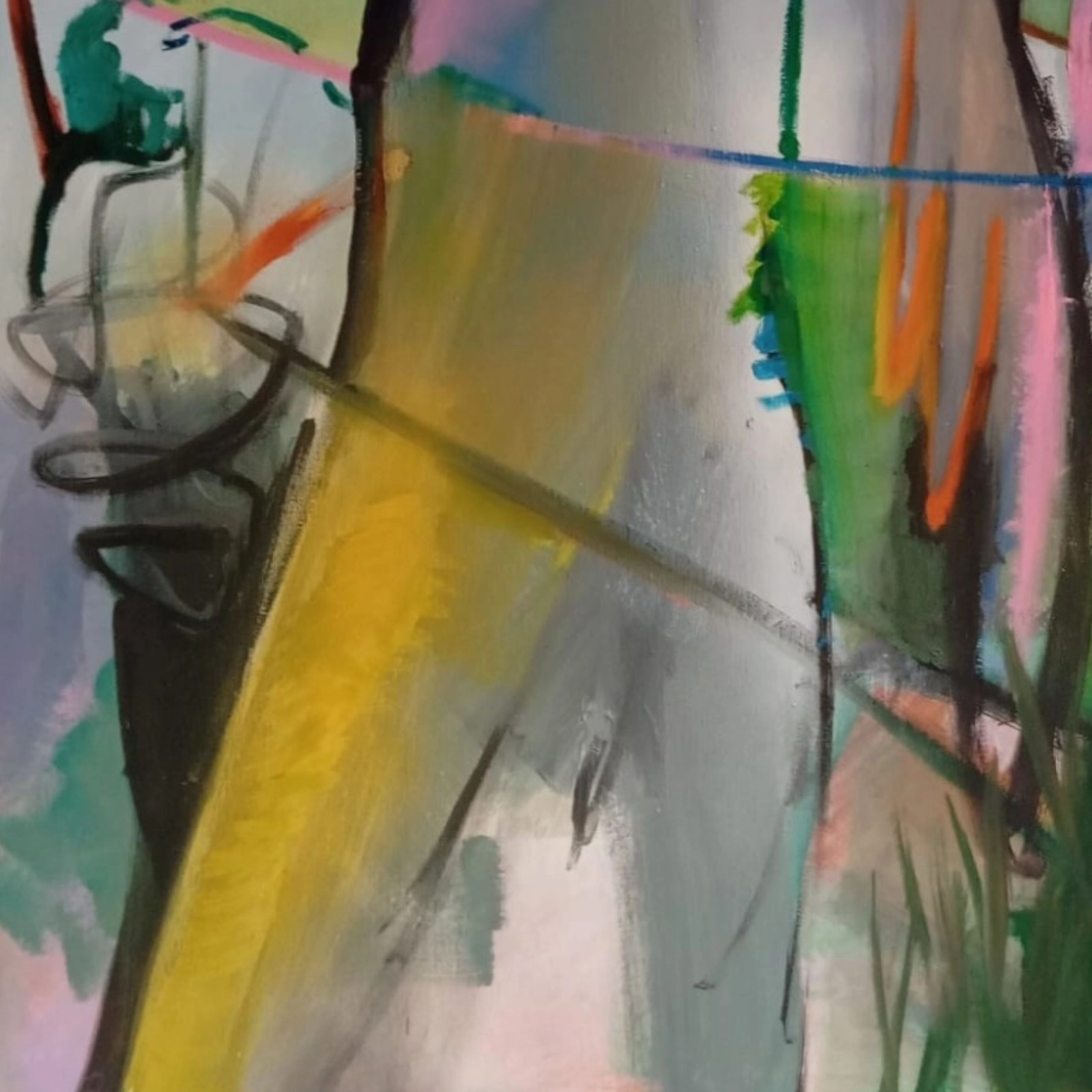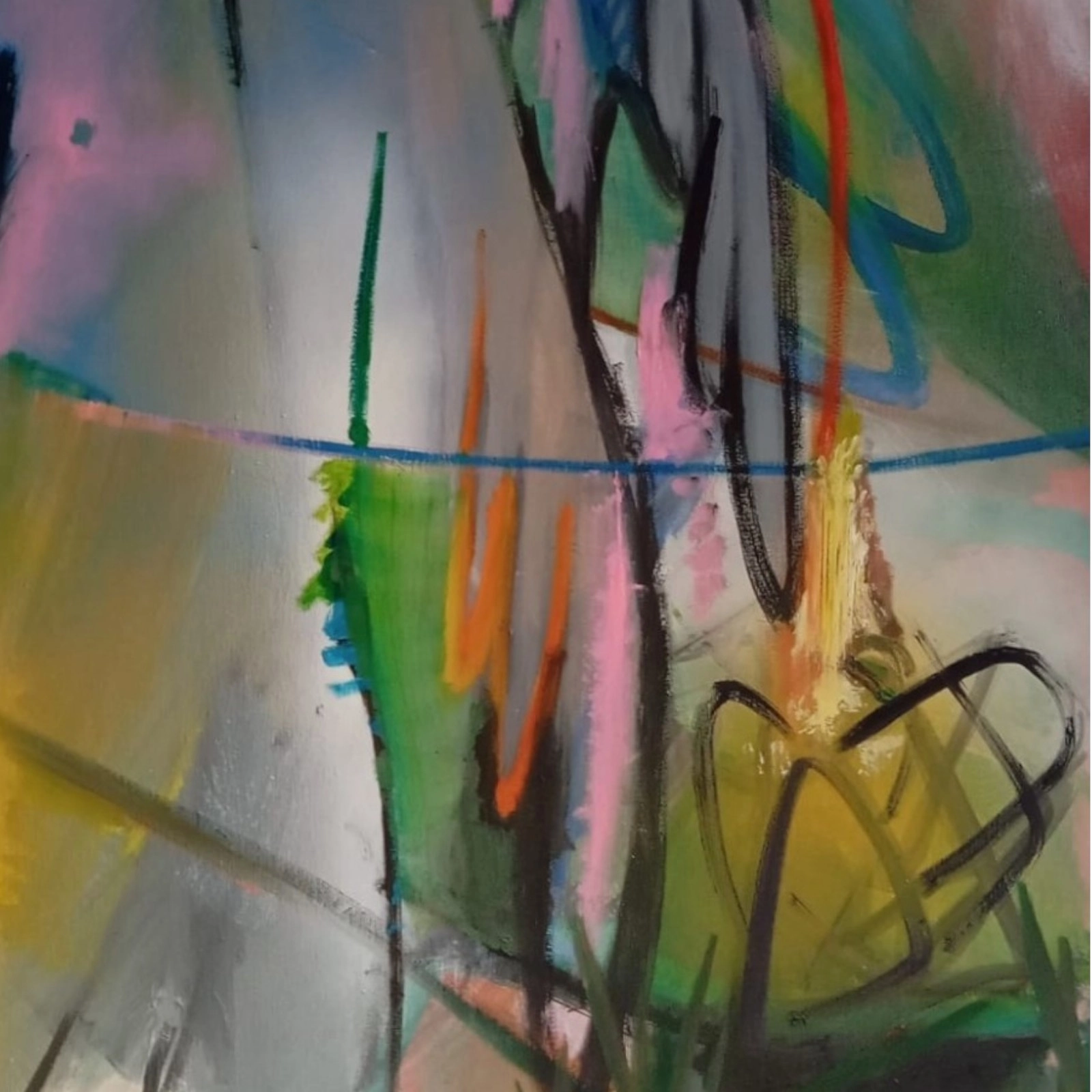 La tecnica a olio su tela rivela padronanza e maturità pittorica: velature, campiture liquide e sovrapposizioni creano una struttura visiva stratificata, che restituisce profondità materica e complessità emotiva. Il colore diventa linguaggio, il gesto diventa narrazione. La superficie pittorica è trattata come spazio di esplorazione: non ci sono contorni rigidi, ma un flusso continuo di energia visiva. Ogni pennellata e scelta cromatica testimoniano l’unicità dell’opera, distinguendola da riproduzioni o stampe.