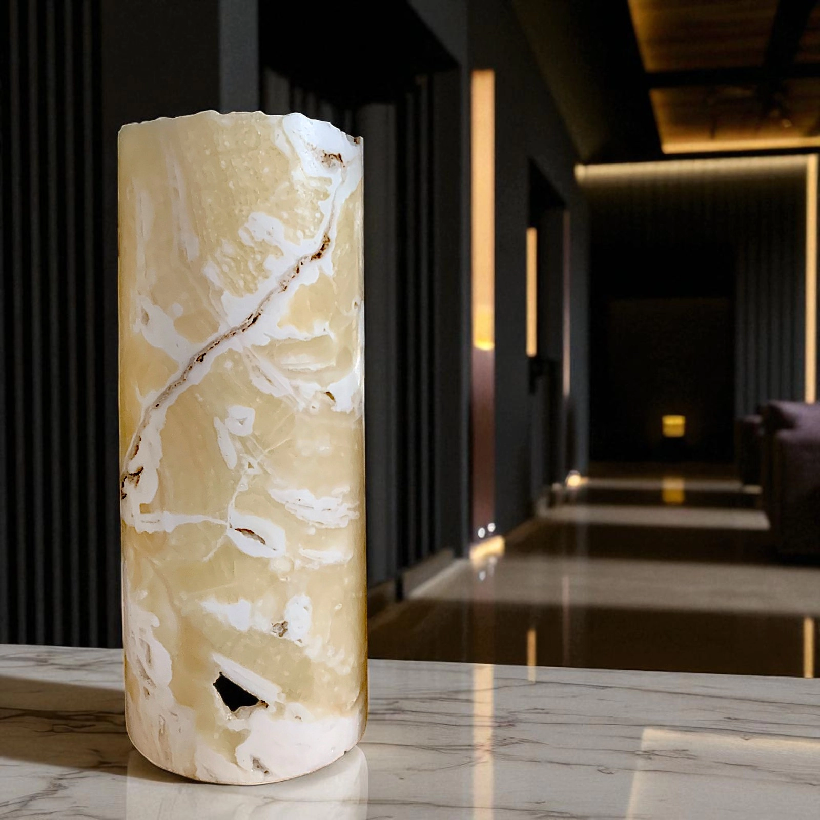 L’onice è da sempre protagonista di progetti di architettura d’interni, grazie alla sua eleganza senza tempo e alla sua versatilità. Il suo utilizzo in illuminazione esalta la profondità della materia, trasformando la luce in un elemento di arredo emozionale.