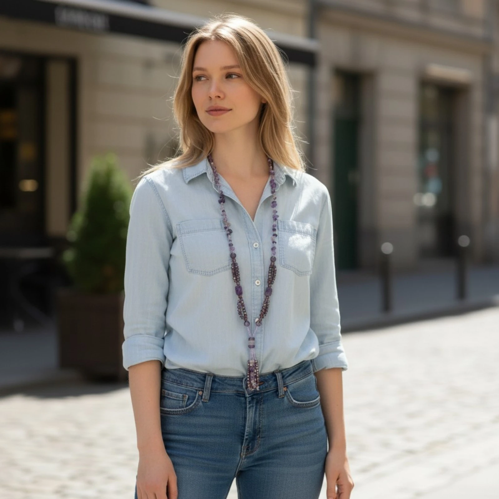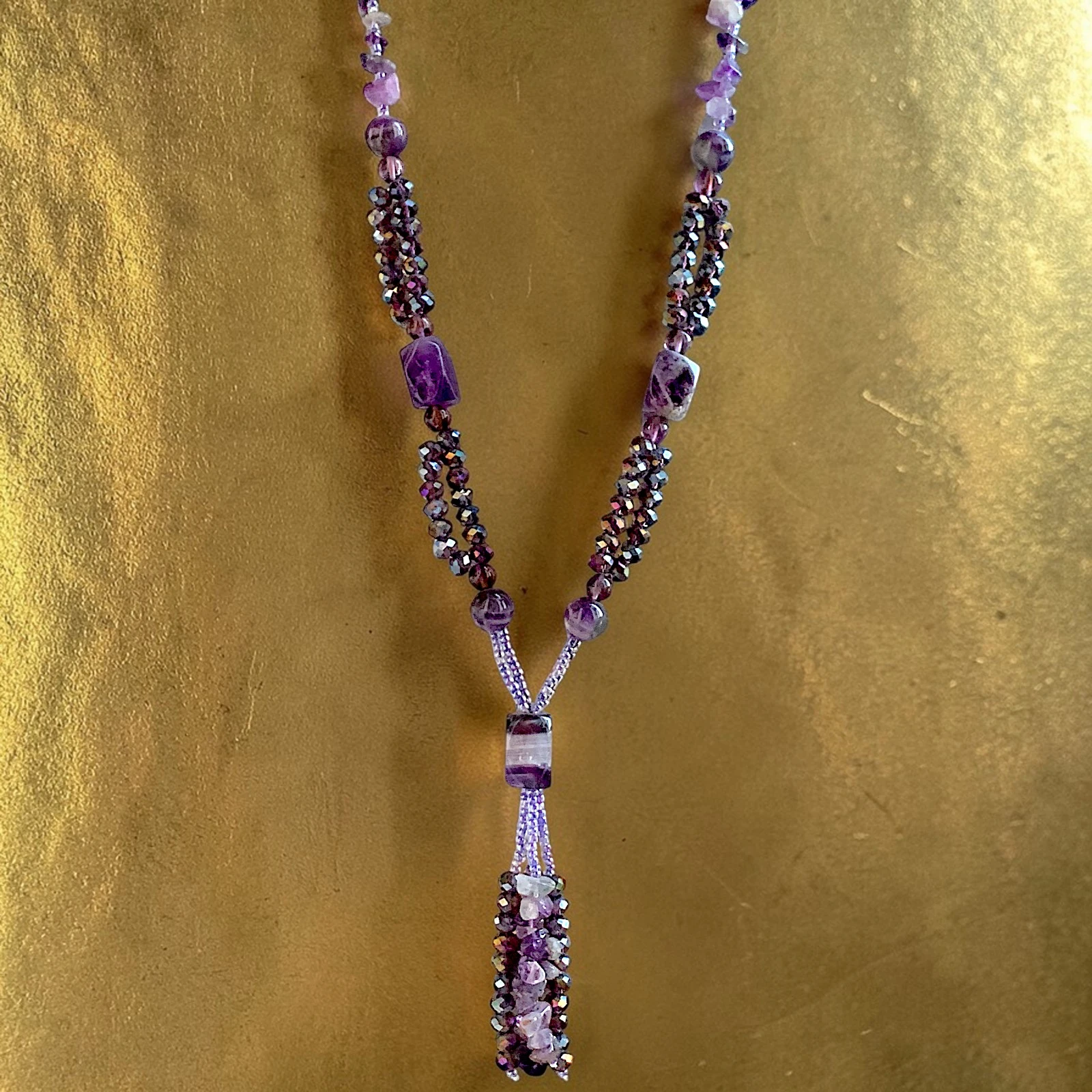 Lunga Collana Artigianale in Ametista Viola D 43cm
