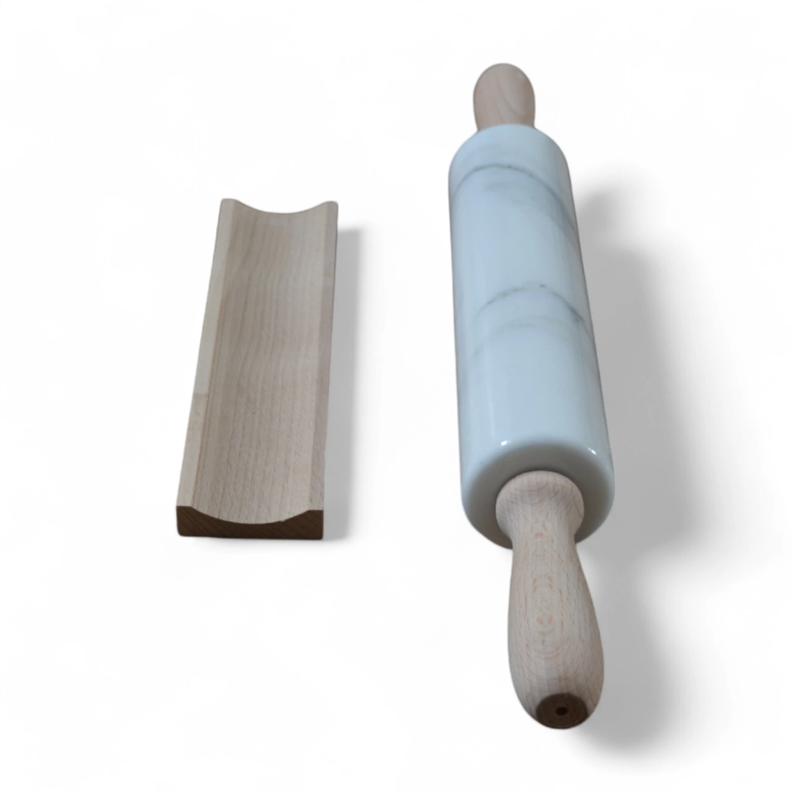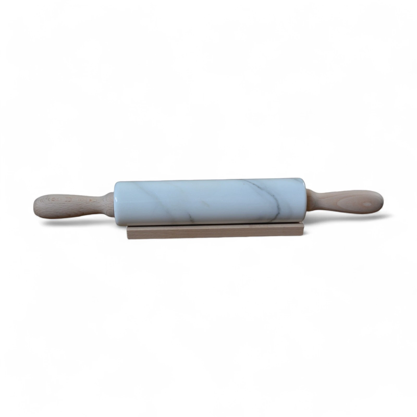 Il mattarello in marmo bianco Carrara non è solo uno strumento da cucina, ma un oggetto di design che unisce funzionalità e bellezza. Le venature naturali del marmo conferiscono un’estetica unica e raffinata, mentre la sua robustezza lo rende ideale per lavorare impasti dolci o salati. I manici in legno offrono un tocco di calore e praticità, garantendo un’esperienza di utilizzo confortevole.