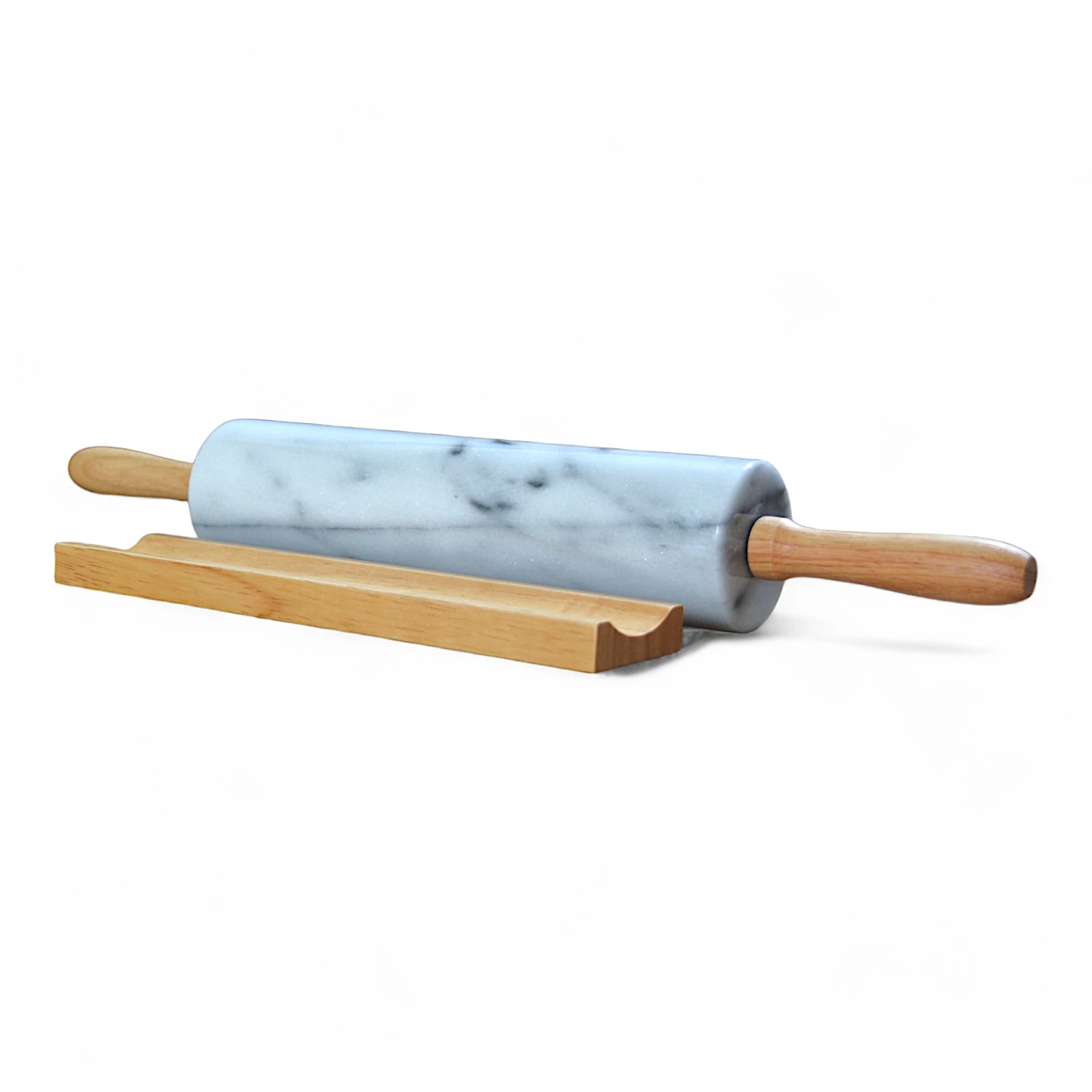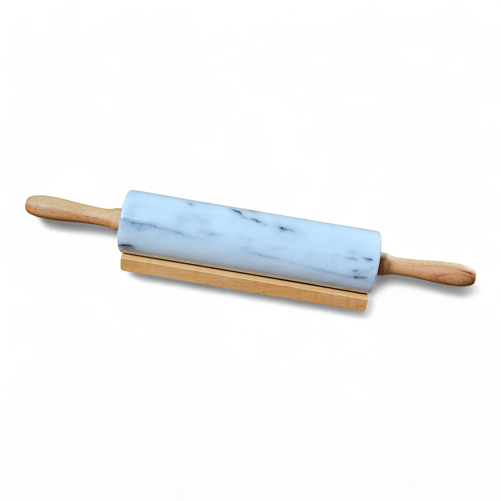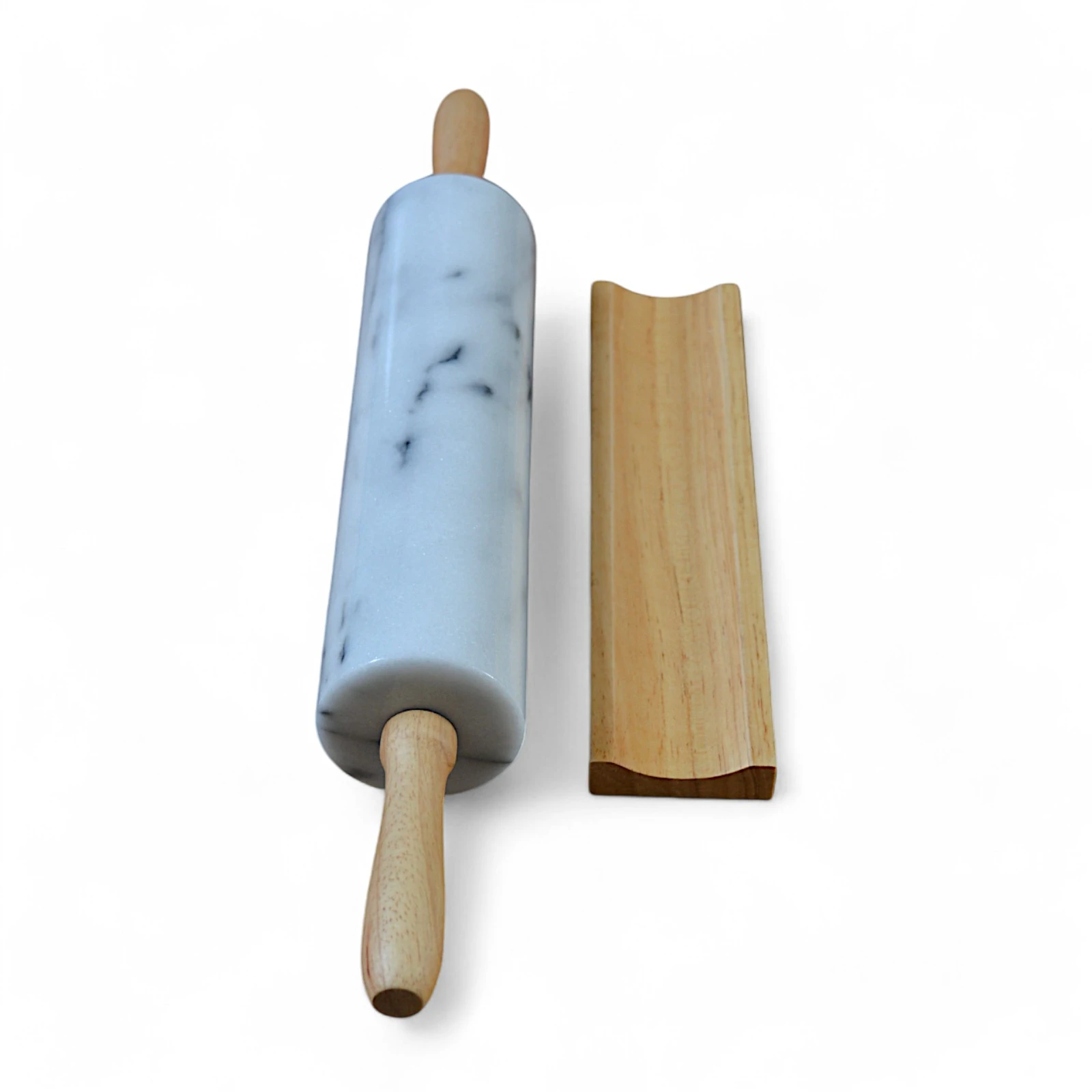 Il mattarello in marmo bianco Statuario non è solo uno strumento da cucina, ma un oggetto di design che unisce funzionalità e bellezza. Le venature naturali del marmo conferiscono un’estetica unica e raffinata, mentre la sua robustezza lo rende ideale per lavorare impasti dolci o salati. I manici in legno offrono un tocco di calore e praticità, garantendo un’esperienza di utilizzo confortevole.