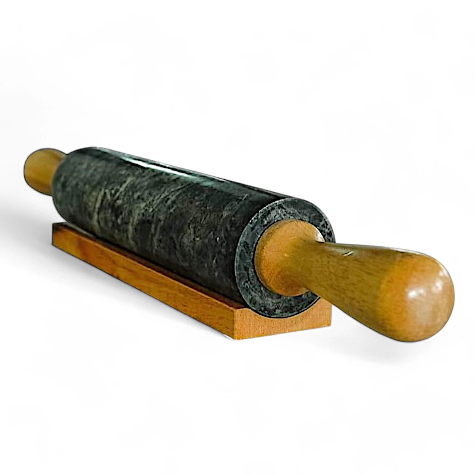 Il mattarello in marmo verde non è solo uno strumento da cucina, ma un oggetto di design che unisce funzionalità e bellezza. Le venature naturali del marmo conferiscono un’estetica unica e raffinata, mentre la sua robustezza lo rende ideale per lavorare impasti dolci o salati. I manici in legno offrono un tocco di calore e praticità, garantendo un’esperienza di utilizzo confortevole.