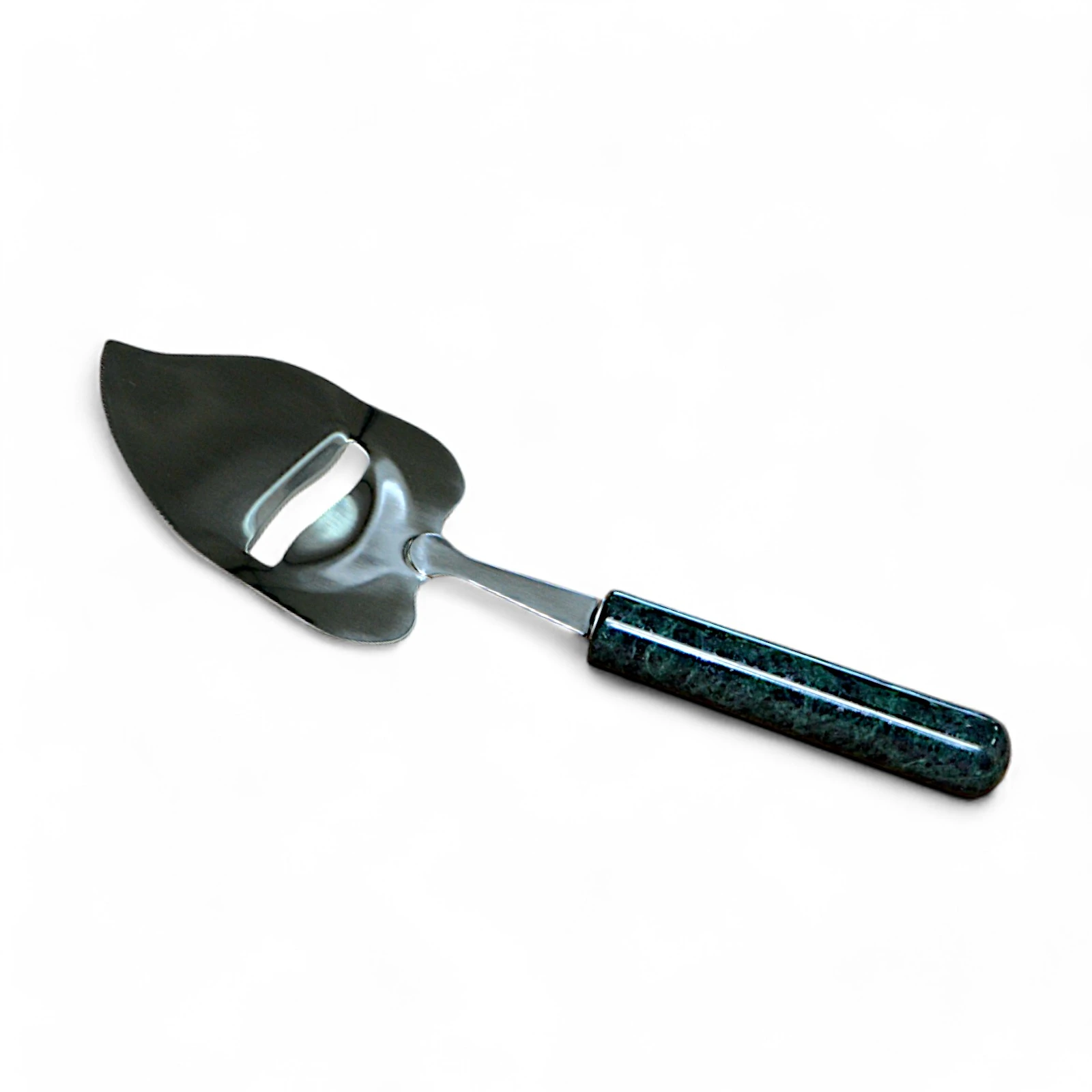 L’elegante paletta per scaglie di Grana in marmo verde non è solo un utensile, ma un’opera d’arte che trova il suo spazio in qualsiasi ambiente. Ogni paletta è creata artigianalmente, garantendo la cura dei dettagli e l’unicità delle venature naturali della pietra. La solidità del marmo, unita alla raffinatezza della lavorazione, trasforma l’oggetto in un accessorio esclusivo per amatori e collezionisti. Versatile e resistente, diventa indispensabile non solo per il Grana, ma anche per il tartufo, la cioccolata e altre specialità, adattandosi ad usi molteplici con praticità e stile.