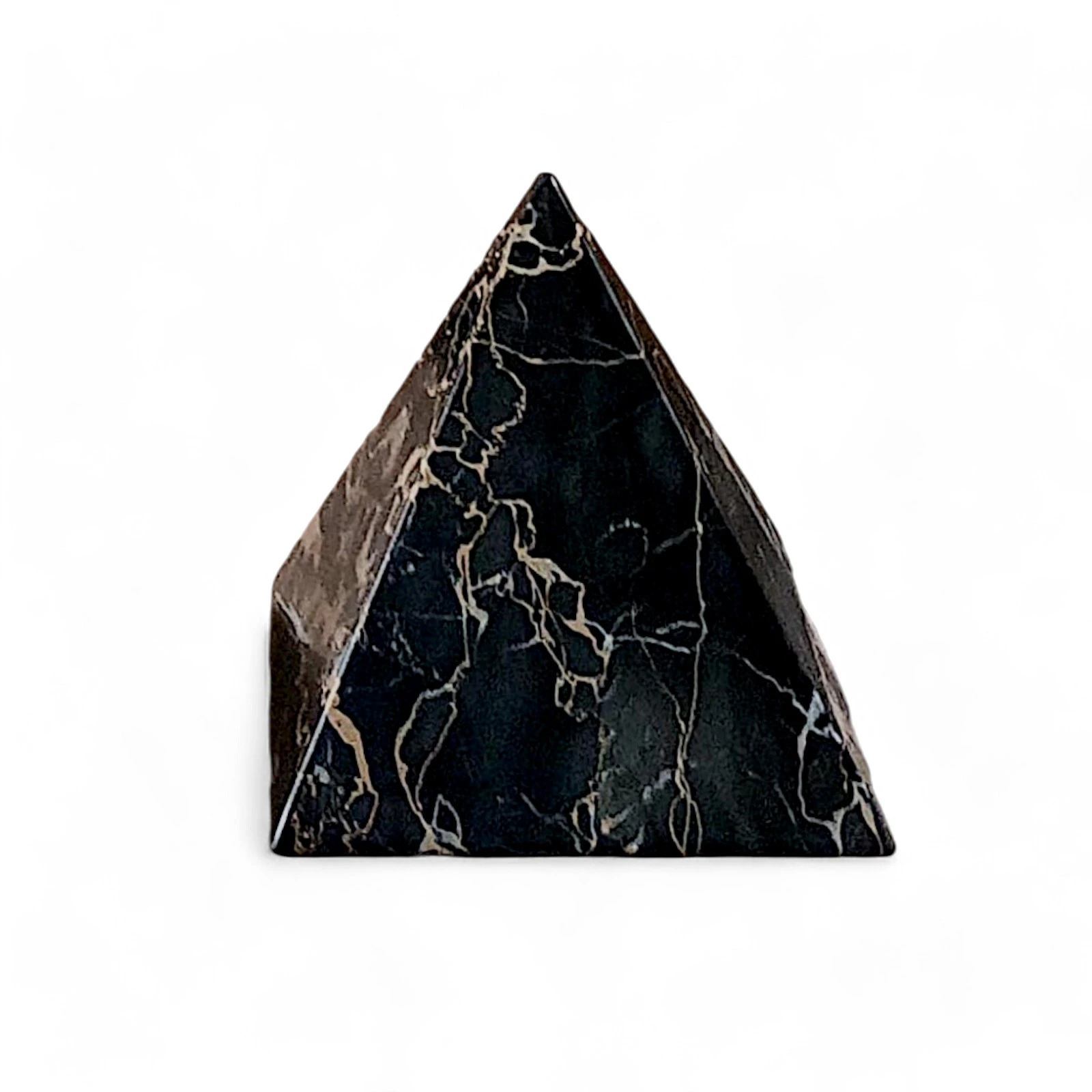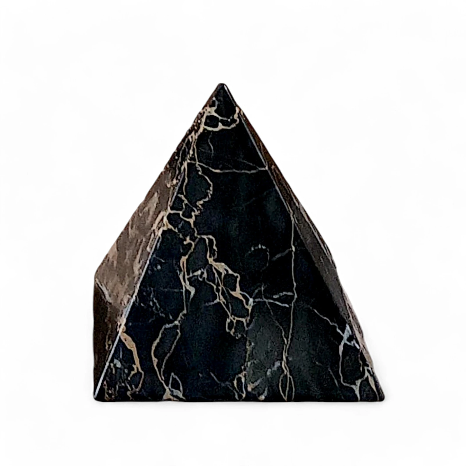 La piramide in marmo Nero Portoro rappresenta un oggetto di design unico, capace di coniugare l’eleganza della geometria pura con il fascino delle venature naturali della pietra. La sua lavorazione artigianale assicura un’estetica irripetibile, donando a ogni pezzo una personalità distintiva. Perfetta per ambienti sia moderni che classici, si impone come un elemento decorativo dall’alto valore simbolico e visivo.