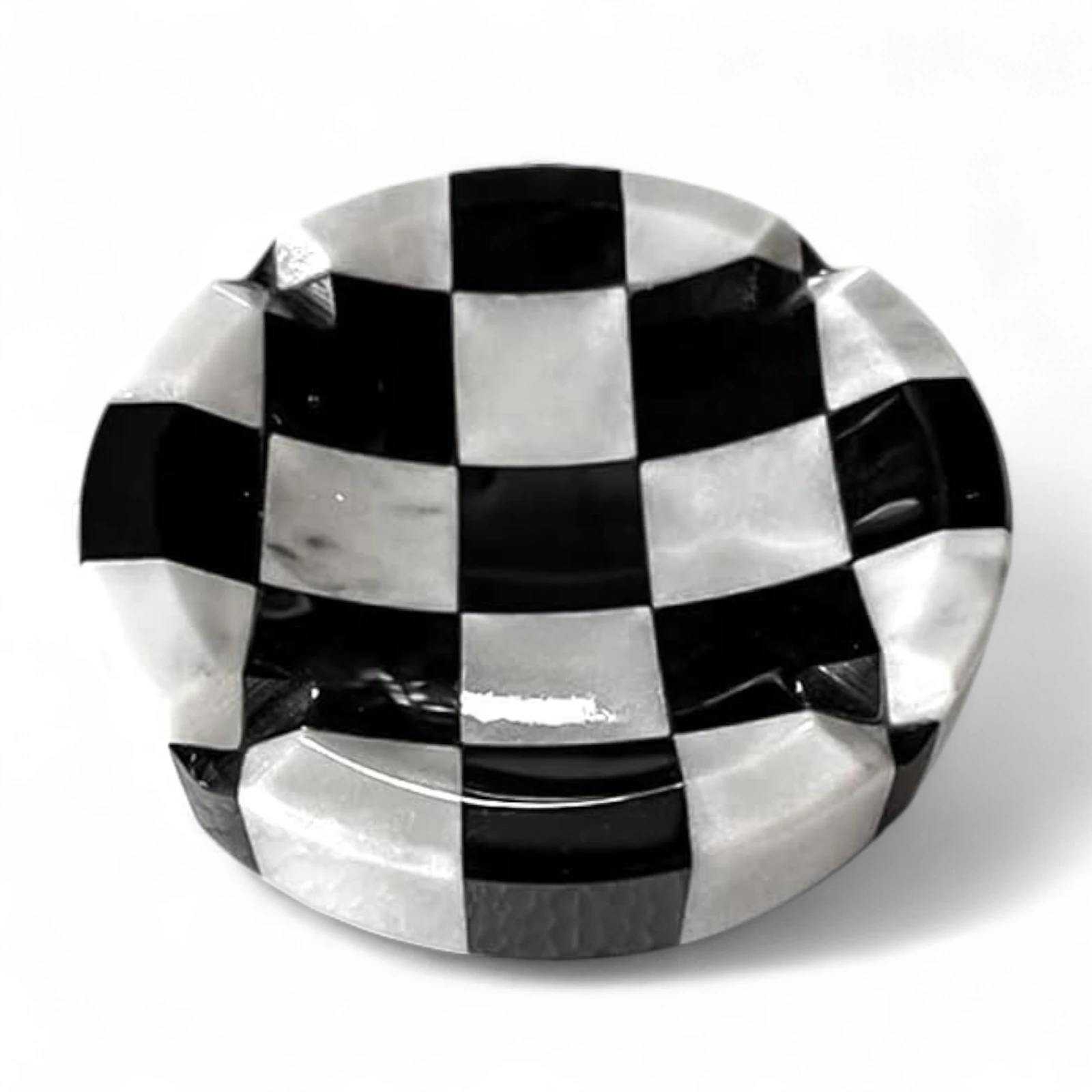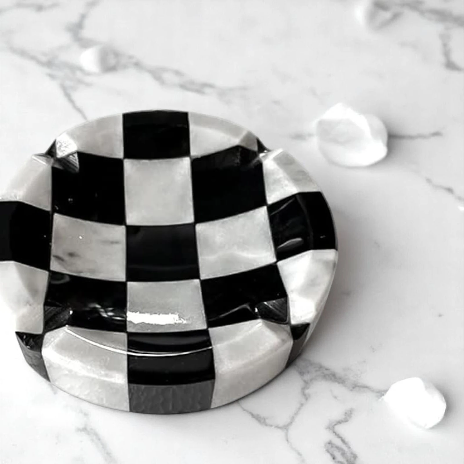 Creato interamente in marmo bianco e nero, il portacenere a scacchi riflette l’equilibrio perfetto tra funzionalità e design. Ogni blocco di marmo naturale è selezionato con cura per garantire qualità e unicità. Il contrasto cromatico a scacchi porta con sé un fascino estetico ricercato, facendo di ogni portacenere un pezzo unico.