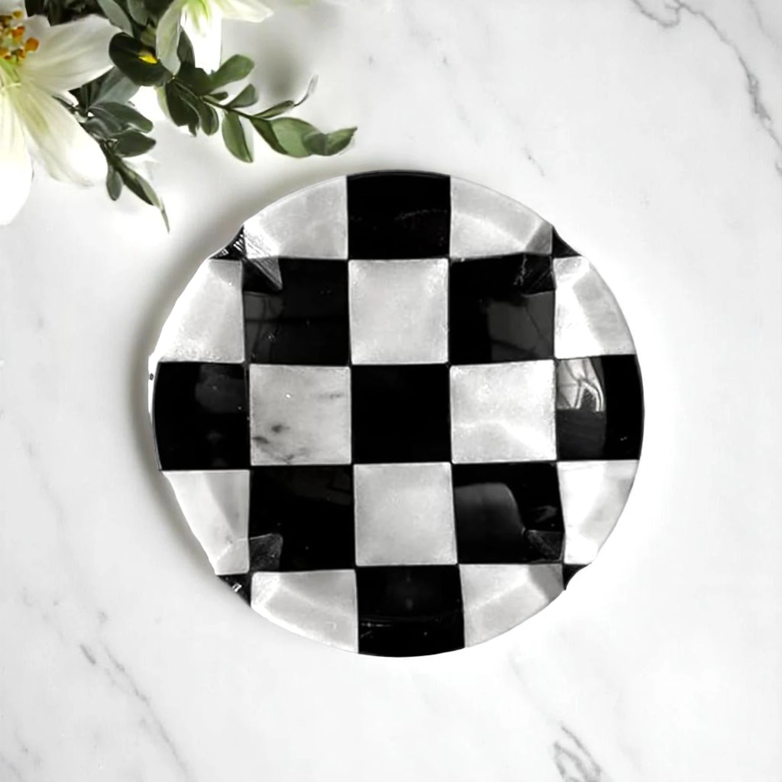 L’eleganza senza tempo del marmo naturale si fonde in un oggetto di design esclusivo che aggiunge personalità e raffinatezza a ogni ambiente. La disposizione a scacchi del marmo bianco e nero dona un fascino intramontabile, che cattura l’attenzione e si adatta a contesti classici e moderni.