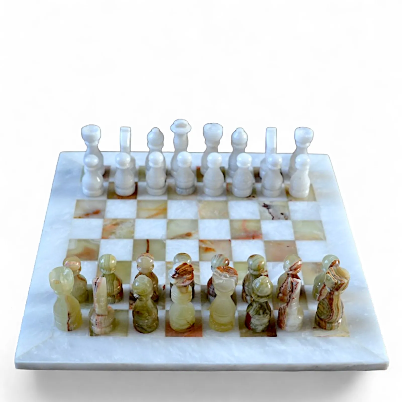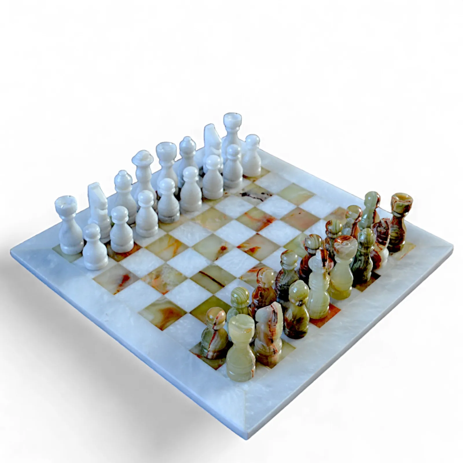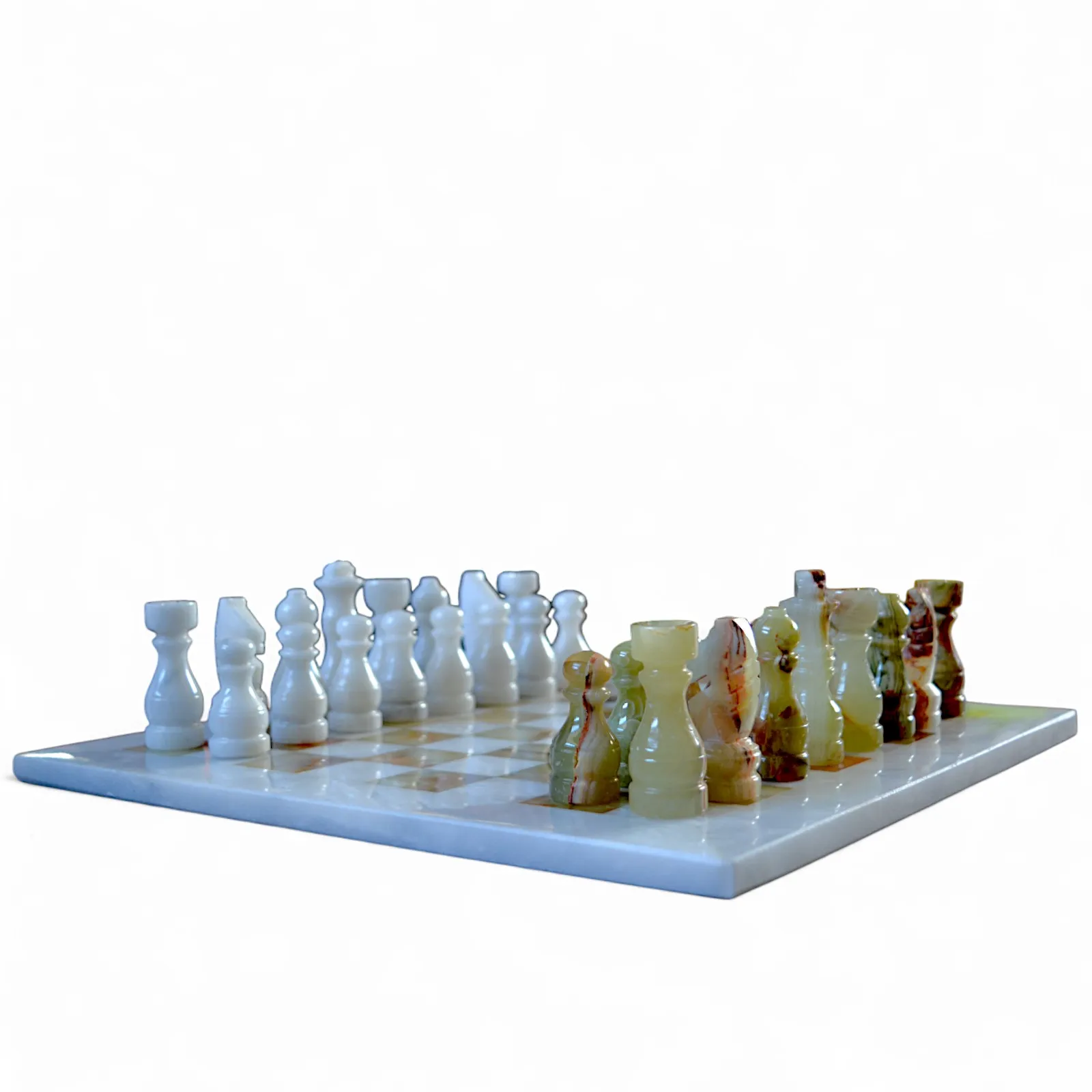 Perché scegliere la nostra scacchiera in marmo bianco e onice verde -Questa scacchiera è ideale per chi cerca un gioco di lusso e un pezzo decorativo unico. Perfetta come regalo per appassionati di scacchi, collezionisti o chi desidera aggiungere un tocco di eleganza a qualsiasi ambiente, unisce design contemporaneo, qualità dei materiali e tradizione in un oggetto senza tempo. Ogni partita diventa così un’esperienza unica, dove stile e strategia convivono armoniosamente.