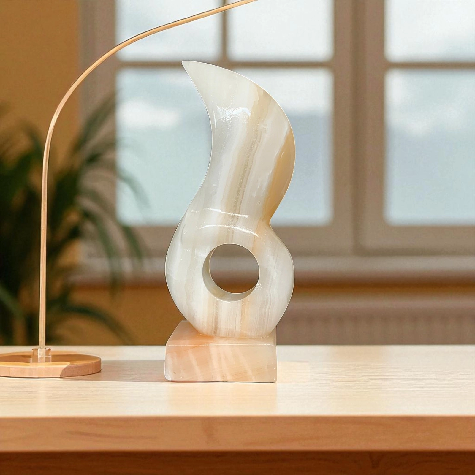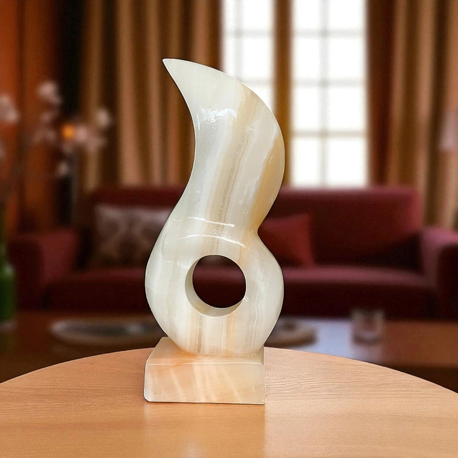 L’onice è una pietra naturale apprezzata fin dall’antichità per la sua trasparenza, venature ondulate e variazioni cromatiche. Utilizzata in architettura e oggettistica decorativa, trova oggi nuova espressione nel design contemporaneo. Ogni scultura è realizzata valorizzando le venature e la lucentezza della pietra, rendendo ogni pezzo unico, elegante e senza tempo.