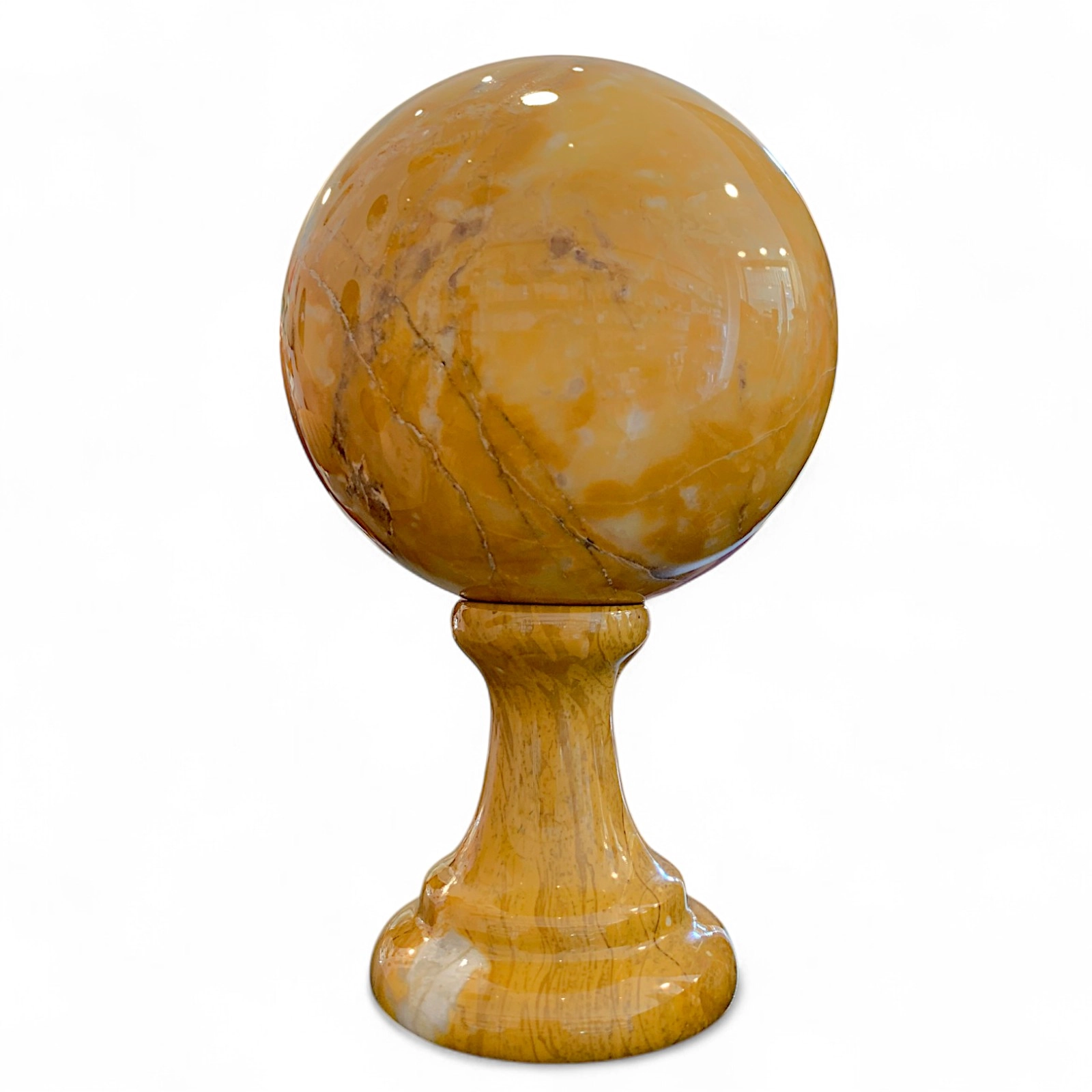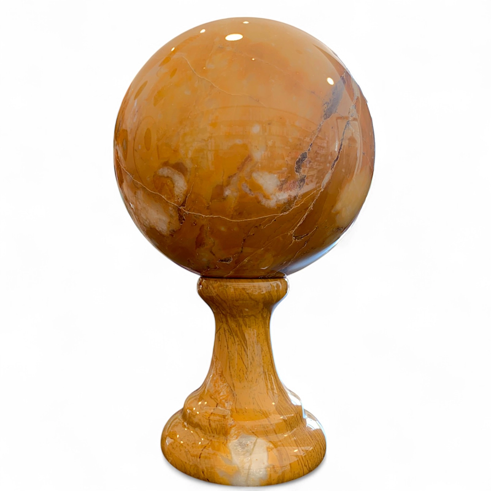 Ogni sfera è il risultato di un’attenta lavorazione, scolpita con precisione per esaltare le caratteristiche della pietra. Le venature naturali rendono ogni creazione irripetibile, trasformandola in un’opera d’arte. Pensata per collezionisti, amatori del design e appassionati di materiali pregiati, è un oggetto che unisce estetica e raffinatezza.