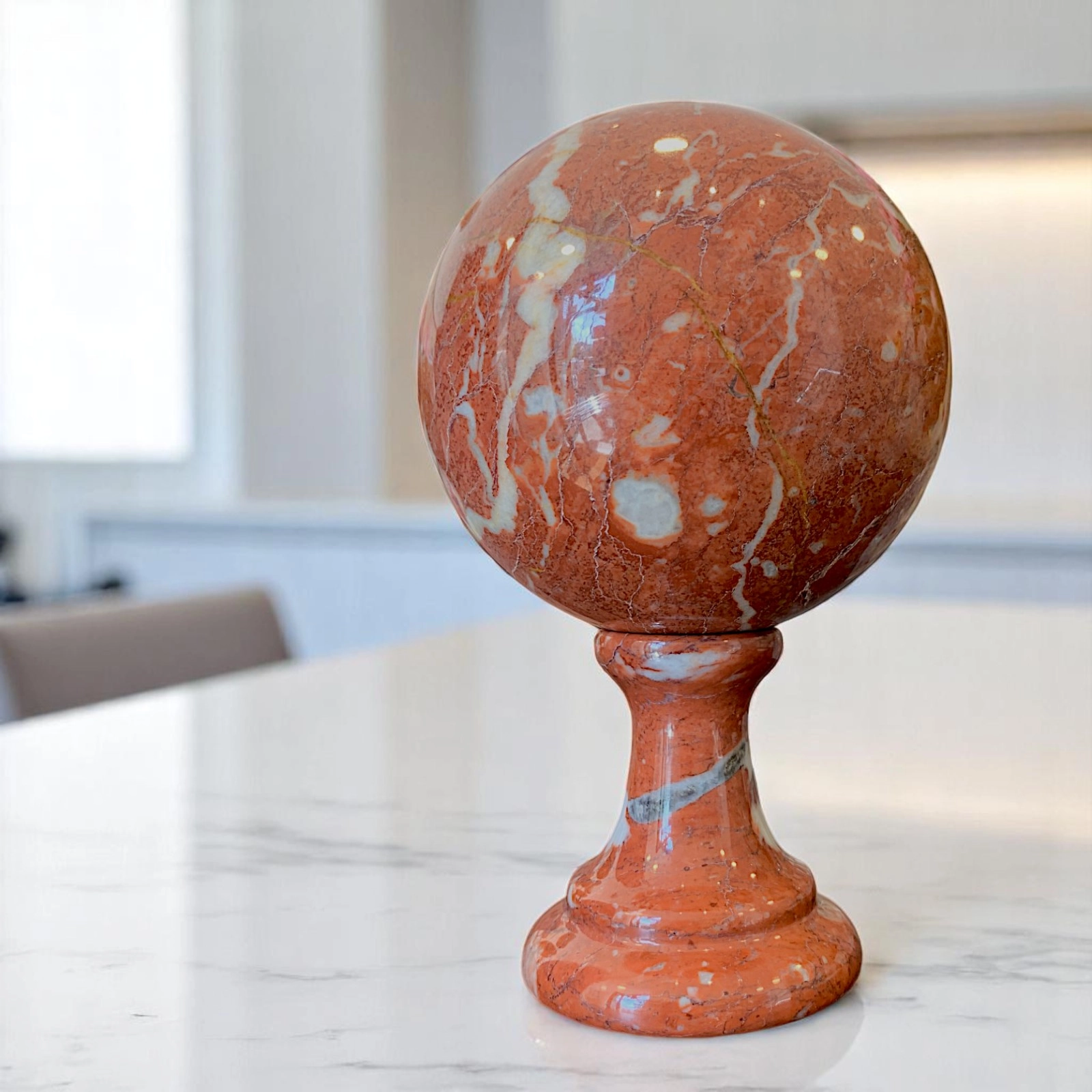 Ogni sfera è il risultato di un’attenta lavorazione, scolpita con precisione per esaltare le caratteristiche della pietra. Le venature naturali rendono ogni creazione irripetibile, trasformandola in un’opera d’arte. Pensata per collezionisti, amatori del design e appassionati di materiali pregiati, è un oggetto che unisce estetica e raffinatezza.