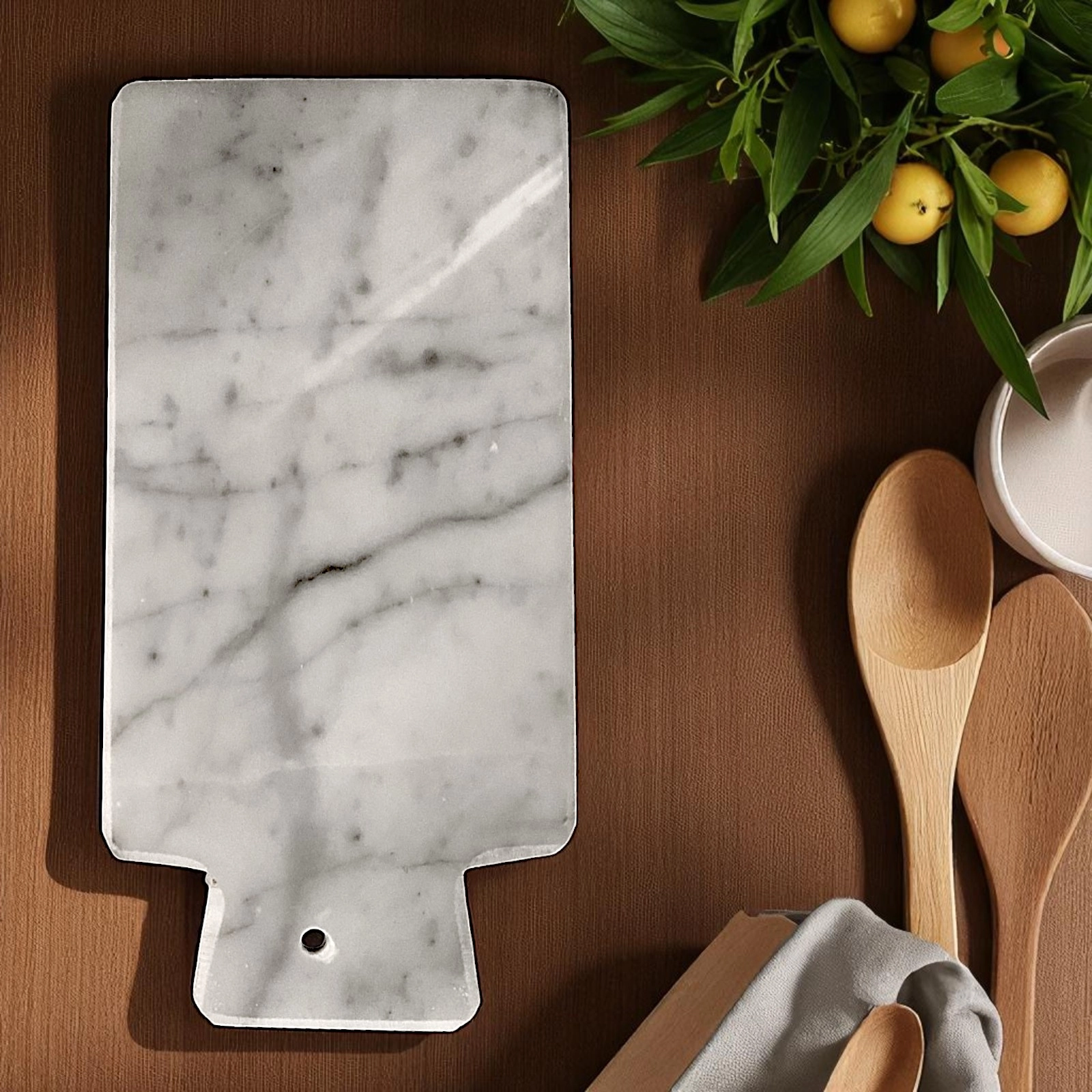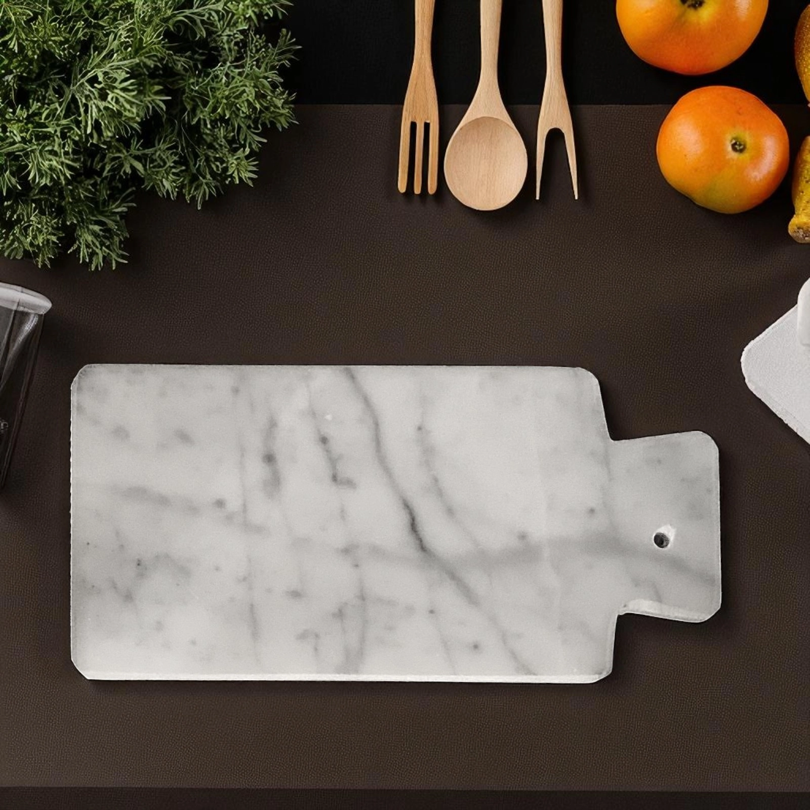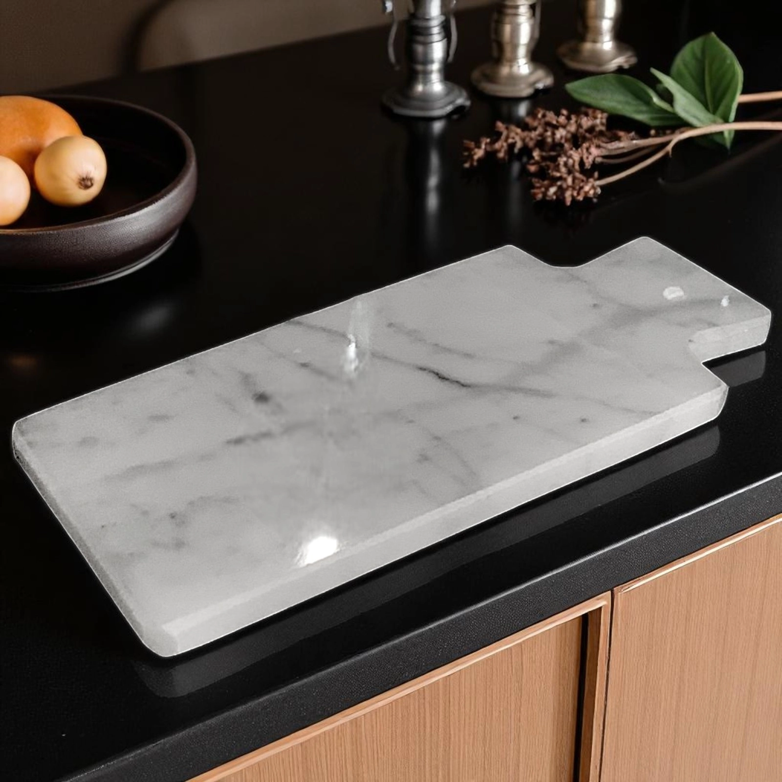 Grazie alla sua dimensione compatta ed essenziale, il tagliere si presta a molteplici utilizzi nel contesto dell’interior design culinario, può essere utilizzato come ripiano per servire le pietanze, oppure come appoggio per tagliarle. La pietra naturale conferisce alla composizione una presenza materica e scultorea, capace di dialogare con stili sia moderni sia classici.