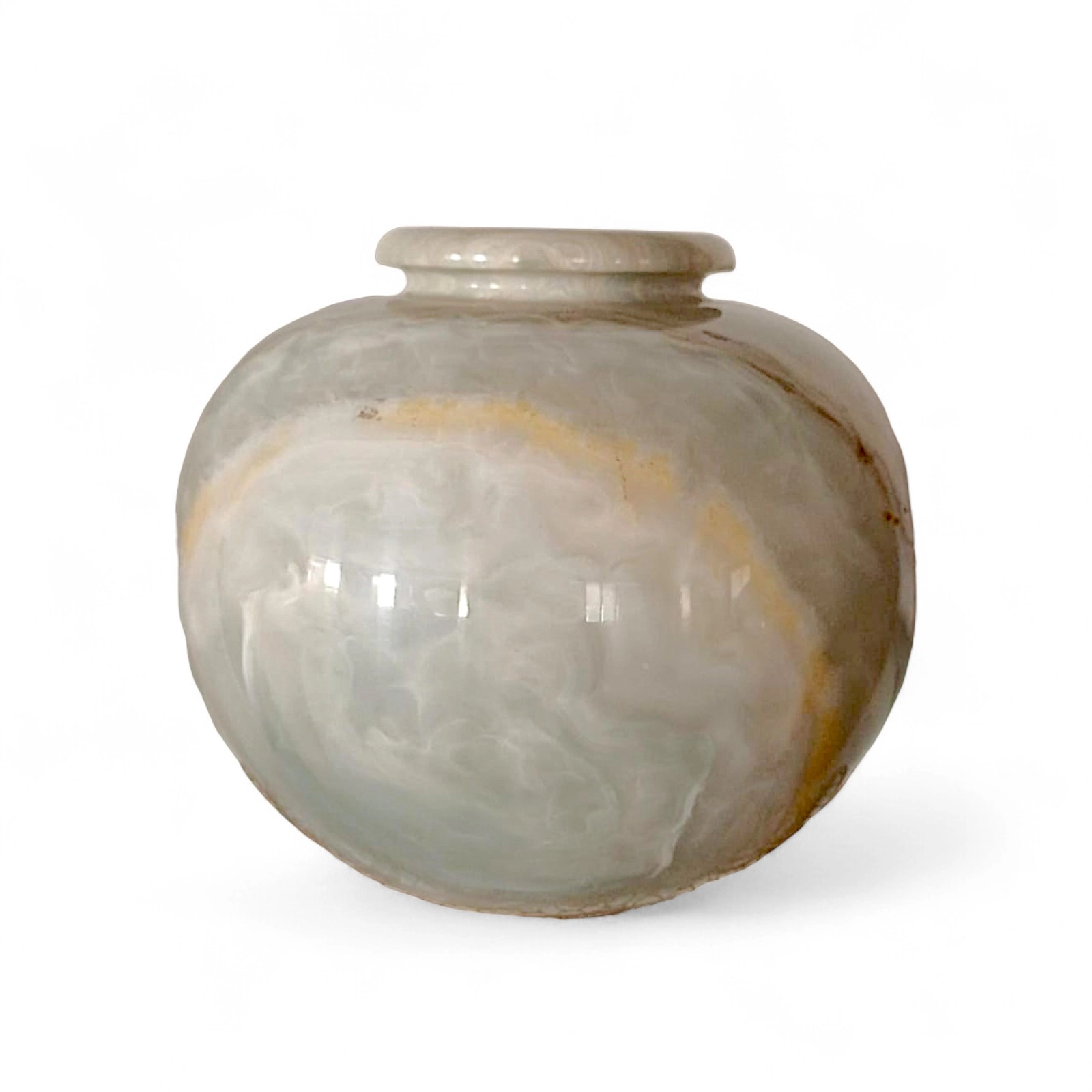 Il contenitore in onice azzurro simbolizza armonia ed eleganza, risultando ideale per arredatori, designer e collezionisti. Può essere utilizzato come complemento decorativo o come autentica scultura artistica, conferendo valore estetico a tavoli, librerie e console. La sua presenza diventa un dettaglio distintivo e raffinato in qualsiasi ambiente.